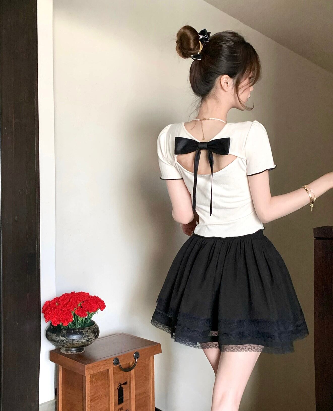 バックリボン レディース トップス カットソー スリム 細身 スマート ショート 半袖 ラウンドネック 襟なし ティアドロッププラケット リボン型チャーム 背中開き バックコンシャス かわいい 大人可愛い きれいめ シンプル カジュアル 上品 おしゃれ ガーリー 抜け感 キュート セクシー 無地 春 夏 女の子 学生 学校 通学 デート お出かけ リゾート 旅行 ビーチ 女子会 休日 バカンス ショッピング 合コン カフェ 韓国 オルチャン 普段使い 着回し XS S M L 小さいサイズ ベージュ