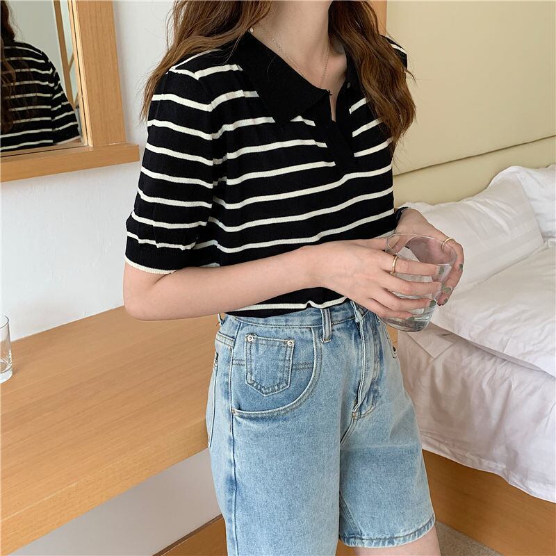 襟付き ボーダー柄 ポロシャツ レディース トップス プルオーバー 丈長 半袖 5分袖 Vネック 角襟 ポロカラー スキッパー かわいい 大人可愛い きれいめ シンプル カジュアル 上品 おしゃれ こなれ感 ルーズ 存在感 ボーダー 春 夏 秋 ママ 通勤 学生 学校 通学 デート お出かけ 旅行 公園 女子会 休日 ショッピング カフェ モノトーン 体型カバー 普段使い 着回し S M L ゆったり 黒 ブラック アプリコット