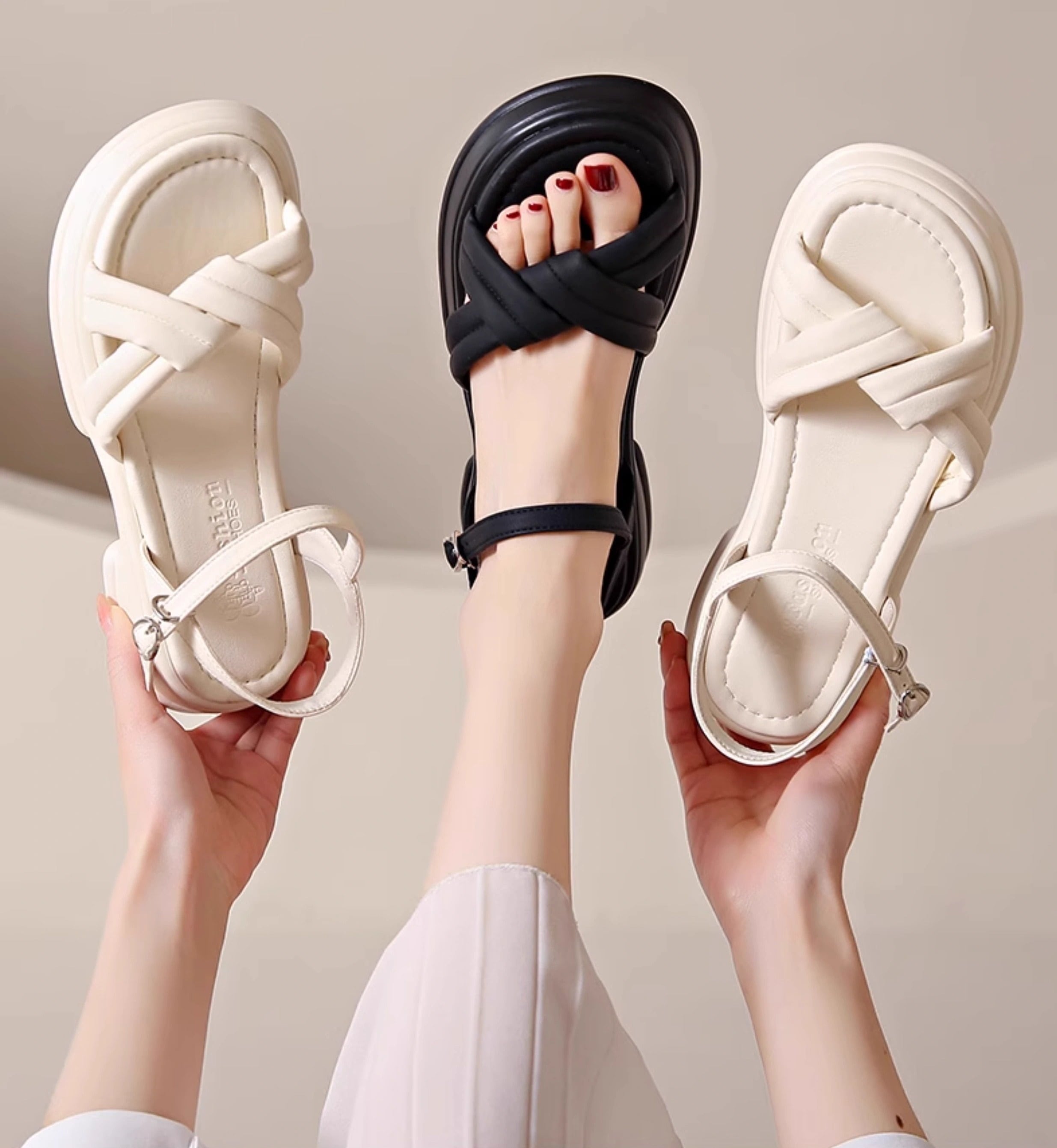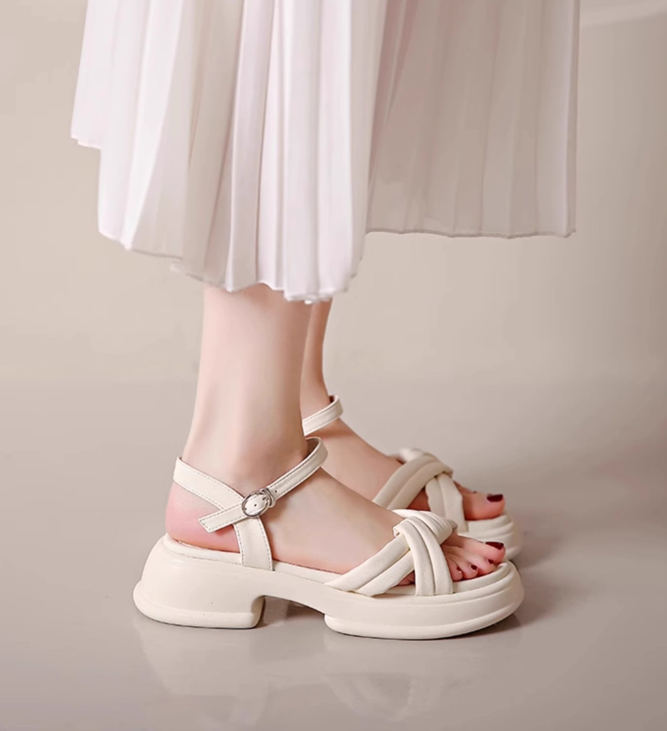 スタイリッシュなデザインと快適な履き心地が魅力の「PU クロスストラップ 厚底サンダル」。チャンキーヒールが足元を美しく演出し、ミドルヒールの高さが歩きやすさを保証します。トレンドの厚底デザインに加え、ラウンドトゥとストラップのベルトが足首をセクシーに魅せます。柔らかいPUレザー素材で足をやさしく包み込み、長時間の着用でも疲れません。ねじりデザインがアクセントとなり、おしゃれでキュートな足元を演出します。
