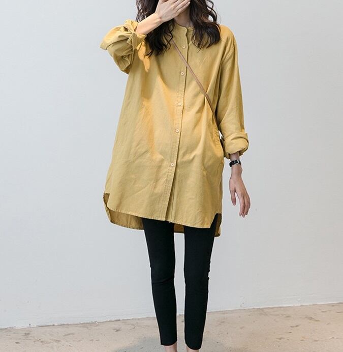 スタンドカラー アシメ ロングシャツ レディース トップス シャツ チュニック 丈長 ミディアム 長袖 襟付き スタンドカラー アシンメトリー ポケット 前開き かわいい 大人可愛い シンプル カジュアル おしゃれ こなれ感 ルーズ ナチュラル 無地 春 夏 秋 冬 ママ マタニティ 通勤 学生 学校 通学 デート お出かけ 旅行 公園 女子会 休日 ショッピング カフェ 重ね着 楽ちん 体型カバー 普段使い 着回し レイヤード 紫外線対策 UV対策 ゆったり フリーサイズ グレー 黄色 イエロー