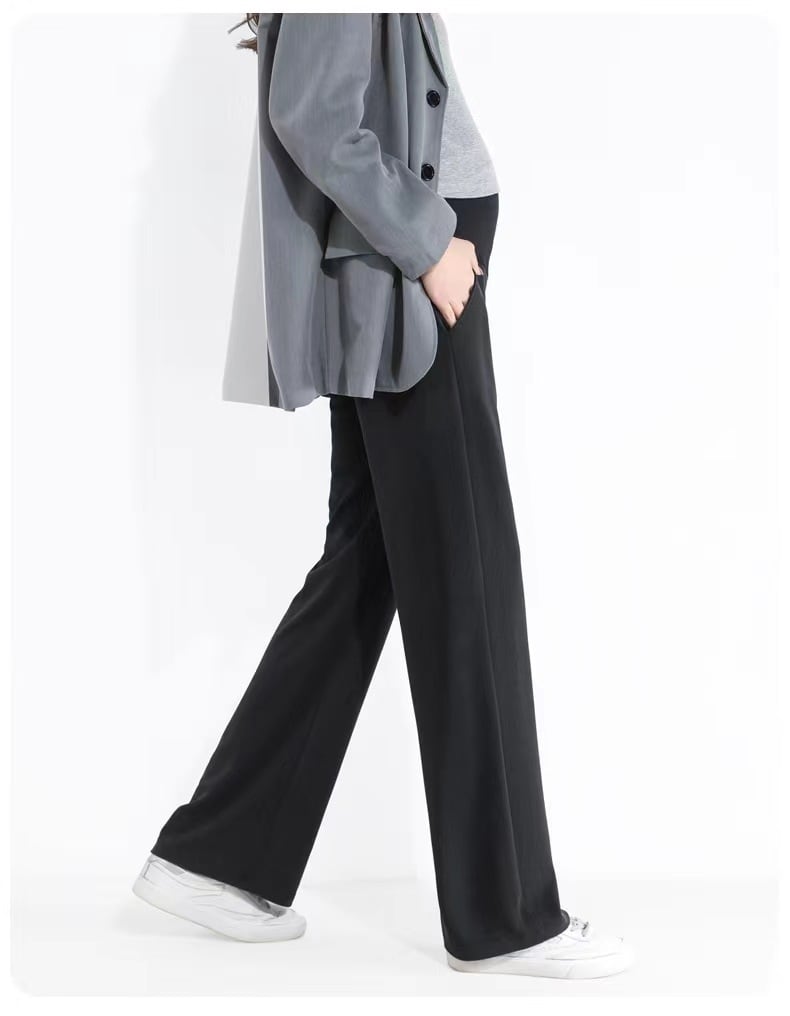 マタニティ対応の腹巻き付きハイウエストワイドパンツをお探しの方におすすめ。通常生地とベロア素材が選べ、肌触り良く、ウエスト部分は伸縮性良いゴム仕様で腹部の成長にも対応。脚長効果も期待できるデザインで、日常使いからデートや旅行まで幅広く活躍します。