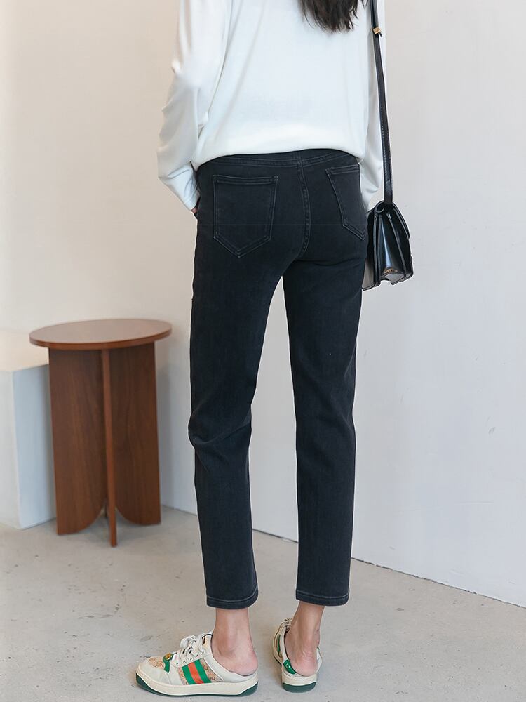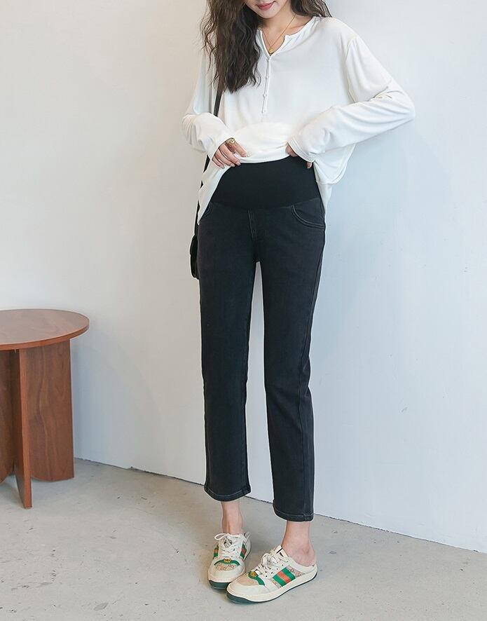 お腹を優しく包み込む腹巻き付きのマタニティ九分丈デニムパンツが登場しました。ハイウエスト仕様で安心感があり、ウエストはゴム仕様で伸縮性にも優れています。ストレートシルエットでスタイリッシュな印象を与え、ポケット付きなので機能性も抜群。カジュアルにはもちろん、オフィスやデートなど様々なシーンで活躍するアイテムです。マタニティ期間だけでなく、出産後も着用可能なので長く愛用できます。シンプルでありながらこなれ感が漂う一着は、大人可愛いスタイルを演出してくれます。ご自身のサイズに合わせてMから2XLまでご用意しております。