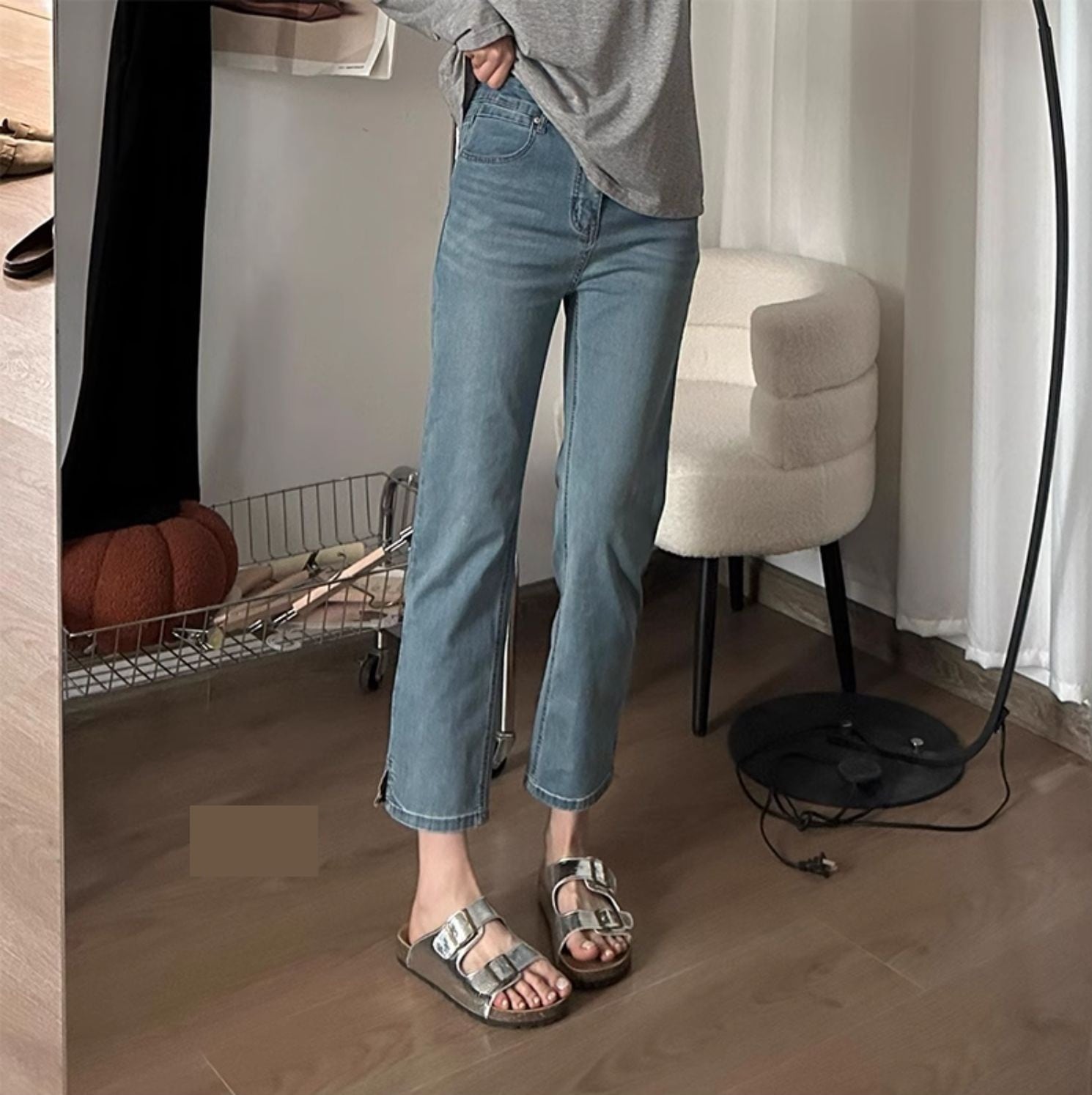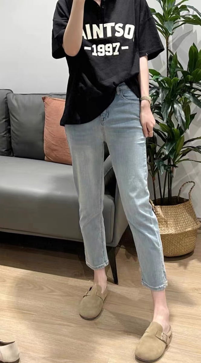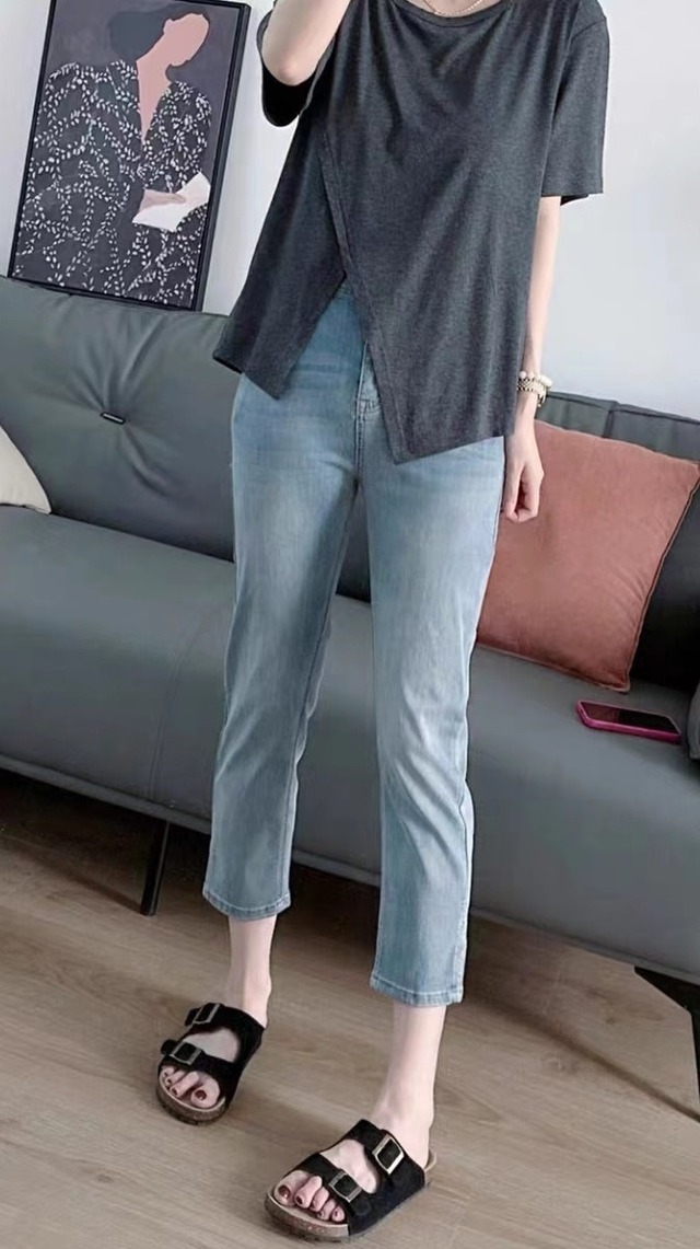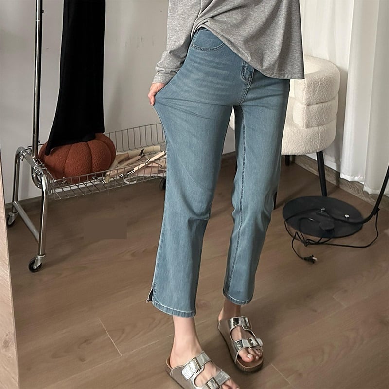 スタイリッシュな八分丈ストレッチデニムパンツが登場!ハイウエストで脚長効果抜群、ストレートなシルエットが大人可愛い着こなしを叶えます。薄手のウォッシュデニムは、春夏秋にぴったり。ポケットもしっかりついていて実用性も◎