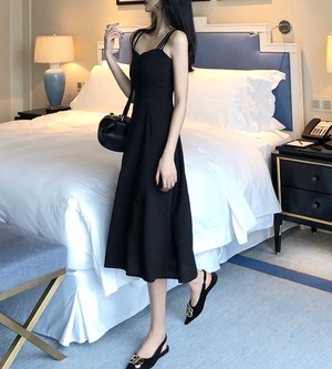繊細な3本のストラップが美しい、スリムなキャミソール ドレスワンピース。Vネックで首元をすっきりと見せつつ、Aラインのシルエットで脚長効果も抜群です。ハイウエストに入った切り替えとフロントタックデザインが、ウエストラインを綺麗に演出。着るだけで主役級の存在感を醸し出し、周囲を魅了すること間違いなし。シンプルで上品、おしゃれでエレガントな装いを叶える一枚です。