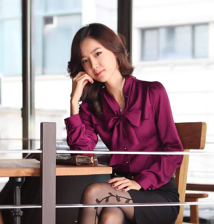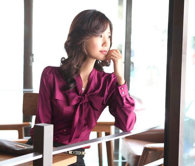 トップスに華やかさをプラスしたいなら、このノーカラーボウタイブラウスがおすすめです。上品なVネックとリボンデザインが、女性らしい表情を引き立ててくれること間違いなし。