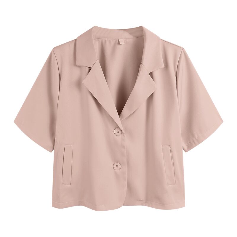 薄手 半袖 ショート丈 ジャケット レディース トップス アウター 上着 羽織 ショート Vネック 襟付き ポケット 前開き ボタン かわいい 大人可愛い きれいめ シンプル カジュアル 上品 おしゃれ こなれ感 エレガント 無地 春 夏 秋 ママ 通勤 学生 学校 通学 デート お出かけ 旅行 公園 女子会 休日 ショッピング カフェ 重ね着 韓国 オルチャン 体型カバー 普段使い 着回し ゆったり フリーサイズ 白 ホワイト 黒 ブラック ピンク ブルー アプリコット 緑 グリーン