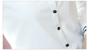 シンプルなデザインで襟とカフスのラインがアクセントになり、フェミニンでかわいらしい印象を演出します。スリムなシルエットで細身効果も期待でき、大人可愛いスタイリングにぴったりです。