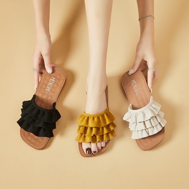 フリル ローヒール サンダル レディース ぺたんこサンダル フラット ぺたんこ 2.5cm ラウンドトゥ 美脚 かわいい 大人可愛い シンプル カジュアル おしゃれ ラブリー キュート ガーリー 主役級 存在感 無地 春 夏 通勤 通学 デート お出かけ リゾート 旅行 公園 休日 デイリー 普段使い 韓国 22.5cm 23.0cm 23.5cm 24.0cm 24.5cm 25.0cm 大きい 黒 黄色 イエロー ブラック オフホワイト