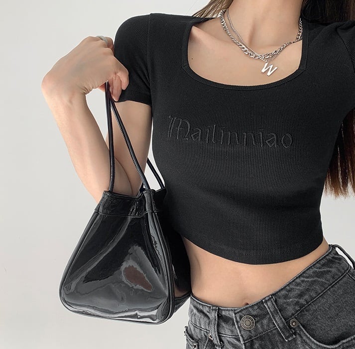刺繡 ロゴ ショート丈 ニット トップス サマーニット レディース プルオーバー インナー ショート 半袖 Uネック 襟なし スリム 細身 へそ出し リブ リブニット かわいい 大人可愛い シンプル カジュアル おしゃれ こなれ感 春 夏 秋 ママ 通勤 学生 学校 通学 デート お出かけ 旅行 公園 女子会 休日 ショッピング カフェ 普段使い 着回し S M L ローズピンク 白 ホワイト 黒 ブラック ダークグレー ピンク 水色 ブルー ロイヤルブルー