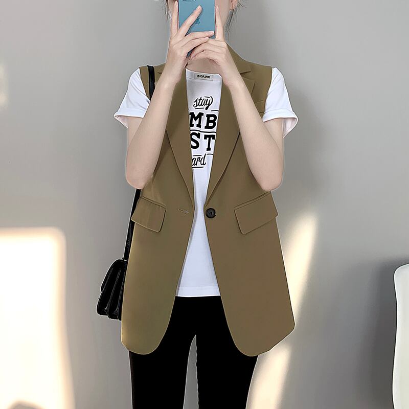 ノースリーブ テーラード ベスト ジャケット レディース 上着 羽織 テーラードジャケット 丈長 ミディアム 袖なし Vネック 襟付き ポケット 前開き ボタン 薄手 厚手 かわいい 大人可愛い シンプル カジュアル 上品 おしゃれ ルーズ 無地 春 夏 秋 冬 ママ オフィス 通勤 学生 学校 通学 デート お出かけ 旅行 公園 女子会 休日 カフェ 重ね着 体型カバー 普段使い 着回し S M L XL 2XL 大きいサイズ ゆったり 白 ホワイト 黒 ブラック 茶色 ブラウン オフホワイト カーキ