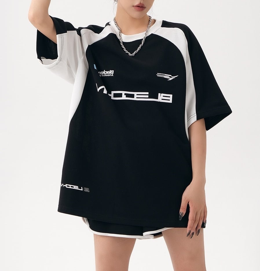 セットアップ ロゴ Tシャツ ショートパンツ 2点セット 上下セット レディース トップス パンツ ボトムス ルームウェア ジャージ 部屋着 ショート 膝上 丈長 半袖 5分袖 ラウンドネック オーバーサイズ サイドスリット バイカラー 配色 かわいい 大人可愛い カジュアル おしゃれ こなれ感 ラフ ボーイッシュ スポーティー ルーズ 春 夏 ママ 学生 部活 お出かけ お泊まり 旅行 ジム 公園 休日 バカンス 楽ちん 普段使い 着回し M L XL 2XL 大きいサイズ ゆったり 黒 ブラック