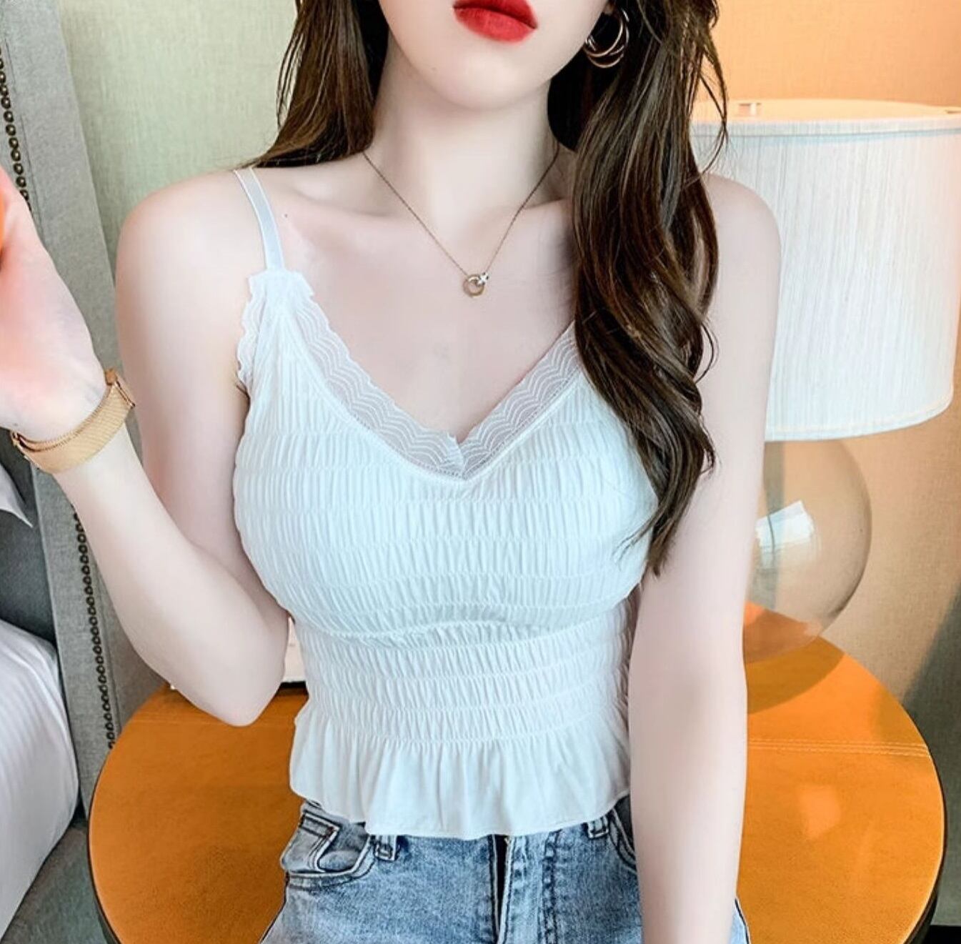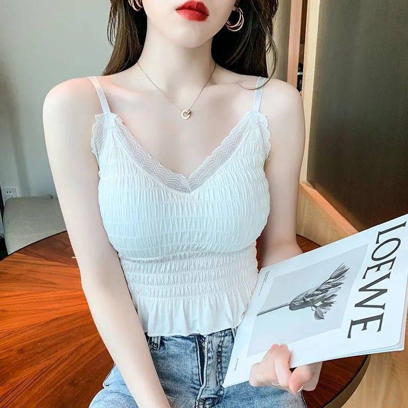 パッド付き レース フリル シャーリング キャミソール レディース トップス プルオーバー インナー ショート 袖なし ノースリーブ Vネック 襟なし スリム 細身 フェミニン 伸縮性 かわいい 大人可愛い きれいめ シンプル カジュアル 上品 おしゃれ ガーリー ラブリー キュート 無地 春 夏 秋 ママ 通勤 学生 学校 通学 デート お出かけ 旅行 公園 女子会 休日 ショッピング カフェ 重ね着 普段使い 着回し レイヤード フリーサイズ 白 ホワイト 黒 ブラック