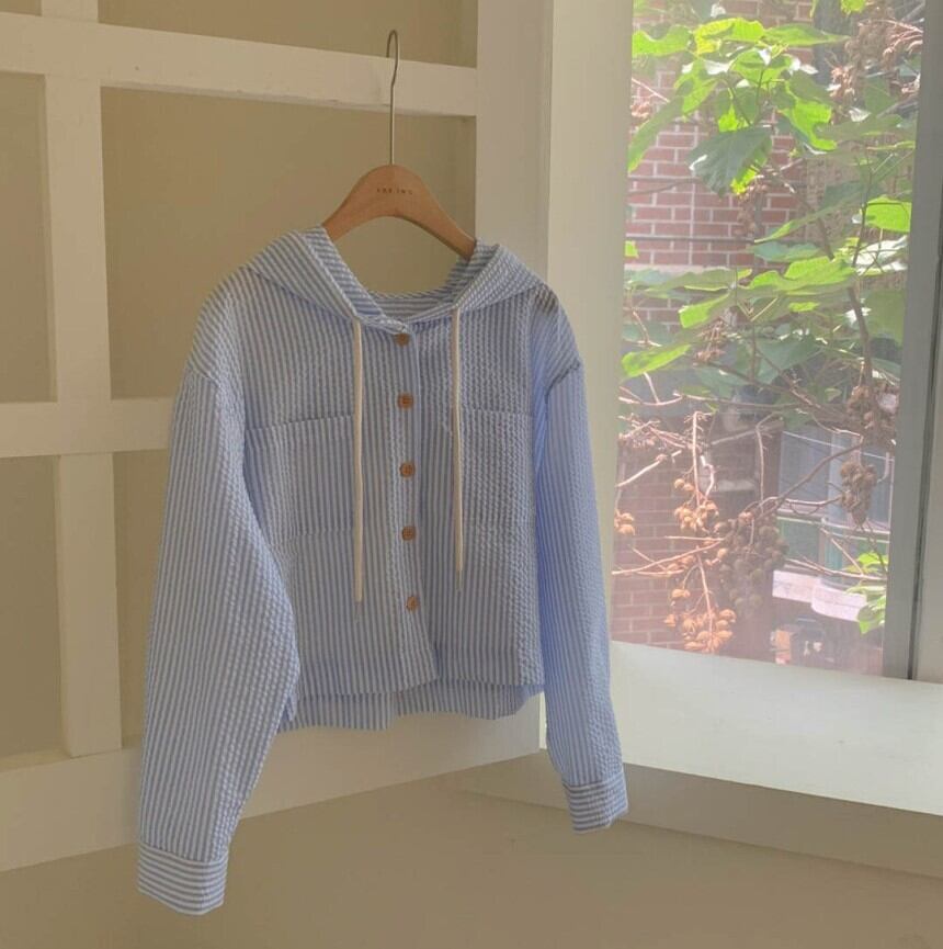 レディース トップス シャツ ブラウス パーカー アウター 上着 羽織 ショート 長袖 ドロップショルダー フード 前開き ボタン かわいい 大人可愛い きれいめ シンプル カジュアル 上品 おしゃれ こなれ感 抜け感 ナチュラル ストライプ 春 夏 秋 女の子 学生 学校 通学 デート お出かけ アウトドア リゾート 旅行 公園 女子会 休日 バカンス フェス 重ね着 韓国 オルチャン コーデ 脚長 普段使い 着回し レイヤード 紫外線対策 UV対策 ゆったり フリーサイズ 青 ブルー 白 ホワイト