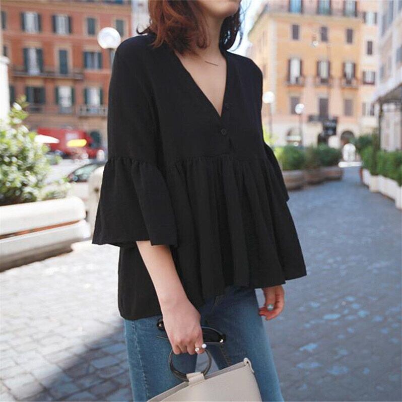 レディース トップス シャツ ブラウス プルオーバー 5分袖 フレアスリーブ ベルスリーブ Vネック 襟なし ノーカラー フレア ペプラム ギャザー 切り替え フェミニン ボタン かわいい 大人可愛い きれいめ シンプル カジュアル 上品 おしゃれ こなれ感 エレガント 抜け感 無地 春 夏 オフィス ビジネス OL 通勤 学生 学校 通学 デート お出かけ お泊まり 旅行 公園 女子会 休日 ガーデン ショッピング 体型カバー 普段使い 着回し モテ S M L XL ゆったり ゆる 黒 ブラック