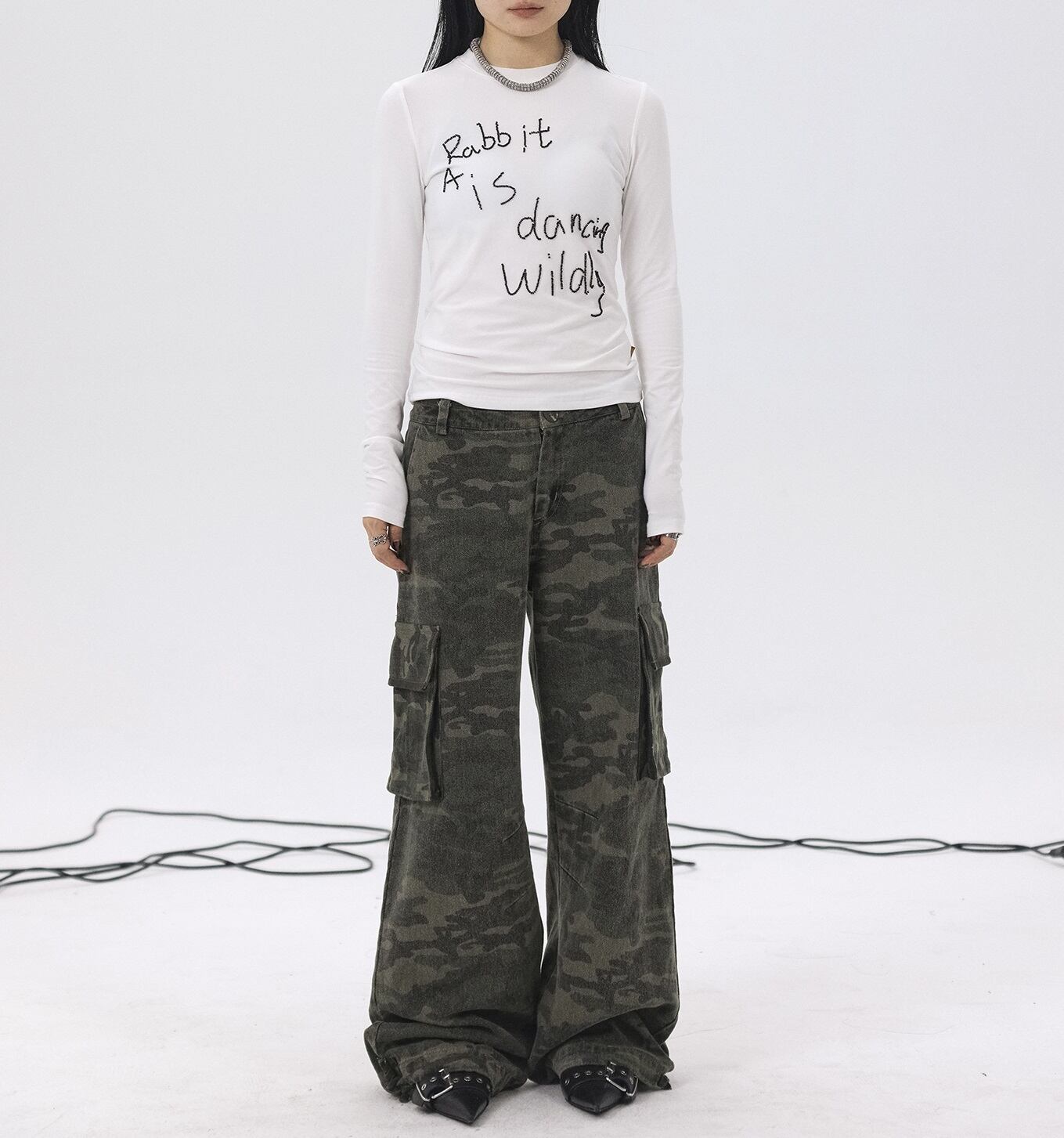 このTシャツは、シンプルながら個性的なデザインが魅力。ロゴがおしゃれに映え、レイヤードスタイルにも最適。襟なしのラウンドネックで、シルエットもすっきりと着こなせます。