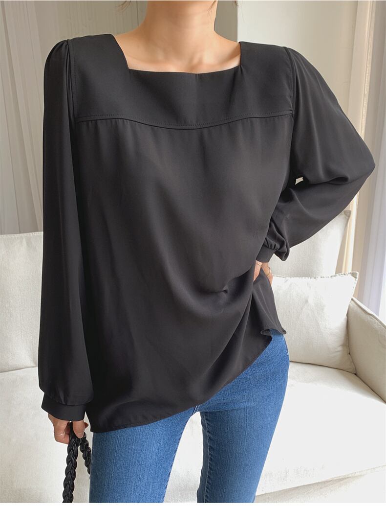 レディース トップス シャツ ブラウス プルオーバー 長袖 パフスリーブ スクエアネック 襟なし ノーカラー 切り替え フェミニン かわいい 大人可愛い きれいめ シンプル カジュアル 上品 おしゃれ こなれ感 クール 抜け感 無地 春 秋 授業参観 フォーマル オフィス ビジネス OL 通勤 学生 学校 通学 デート お出かけ お泊まり 旅行 公園 女子会 休日 ガーデン ショッピング 体型カバー 普段使い 着回し モテ 清楚 S M L XL ゆったり ゆる 乳白色 ミルキーホワイト 黒 ブラック