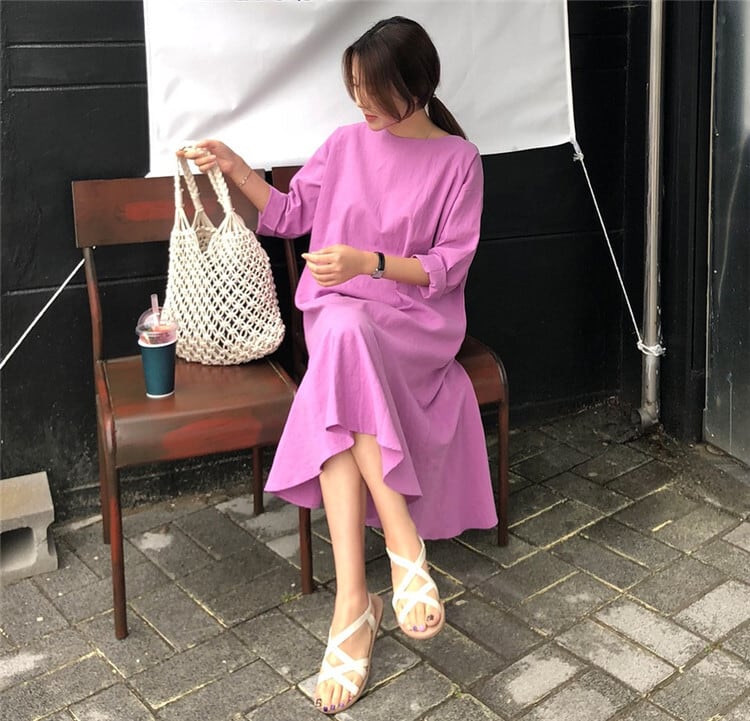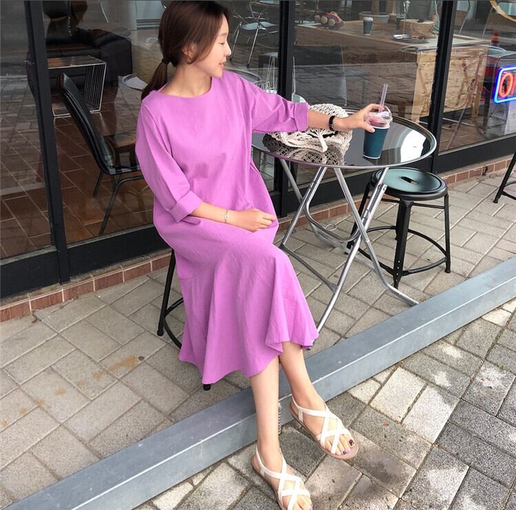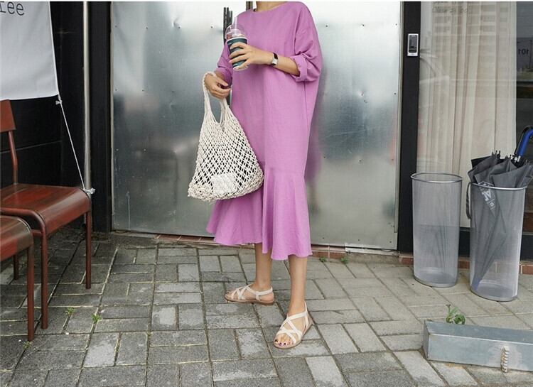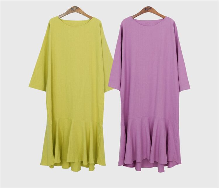 レディース マーメイドワンピース ミモレ ロング 長袖 ドロップショルダー ラウンドネック セミフレア マーメイド フィッシュテール フェミニン フリル かわいい 大人可愛い きれいめ シンプル カジュアル 上品 おしゃれ こなれ感 ガーリー 存在感 抜け感 ベーシック リラックス ナチュラル 無地 春 秋 デート お出かけ お泊まり 旅行 公園 女子会 休日 ガーデン ショッピング カフェ 体型カバー 普段使い 着回し モテ 清楚 定番 S M L XL ゆったり ゆる 黄色 イエロー パープル