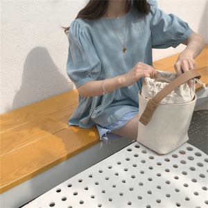 レディース トップス シャツ ブラウス プルオーバー 5分袖 パフスリーブ ラウンドネック 襟なし ノーカラー フレア ペプラム Aライン 切り替え フェミニン ギャザー 切り替えデザイン かわいい 大人可愛い きれいめ シンプル カジュアル 上品 おしゃれ こなれ感 ガーリー 存在感 抜け感 キュート 無地 春 夏 学生 学校 通学 デート お出かけ お泊まり 旅行 公園 女子会 休日 高原 ガーデン ショッピング カフェ 体型カバー 普段使い 着回し S M L XL 茶色 ブラウン 水色 ブルー