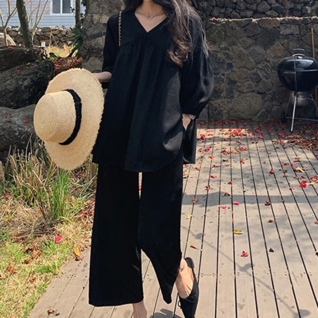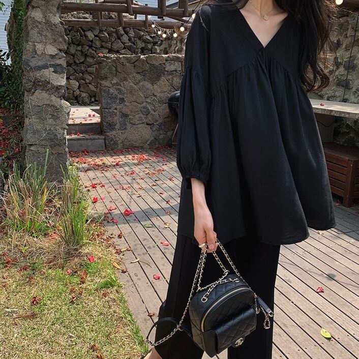 定番 トップス 韓国 オルチャン コットン ブラウス Tシャツ 袖あり 七分丈 Vネック フリル フレア 無地 かわいい 大人可愛い きれいめ Aライン 裾広がり 体型カバー シンプル カジュアル 大人 大人カジュアル 上品 おしゃれ お洒落 かっこいい 大人女子 こなれ感 リラクシー ラフ 春 夏 秋 S M L XL サイズ展開 ゆったり お出かけ 公園デビュー 女子会 休日 アウトドア デイリー 着回し 普段使い 韓国風 韓国系 オルチャン ファッション コーデ ホワイト ブラック 大人カラー