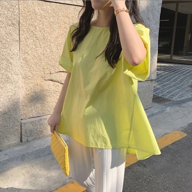 定番 トップス 韓国 オルチャン コットン 綿 ポリウレタン ブラウス Tシャツ 袖あり 七分丈 ラウンドネック フレア 無地 かわいい 大人可愛い きれいめ Aライン 裾広がり 体型カバー シンプル カジュアル 大人 大人カジュアル 上品 おしゃれ お洒落 かっこいい 大人女子 こなれ感 リラクシー ラフ 春 夏 秋 S M L XL サイズ展開 ゆったり お出かけ 公園デビュー 女子会 休日 アウトドア デイリー 着回し 普段使い 韓国風 韓国系 オルチャン ファッション コーデ 大人カラー カラバリ