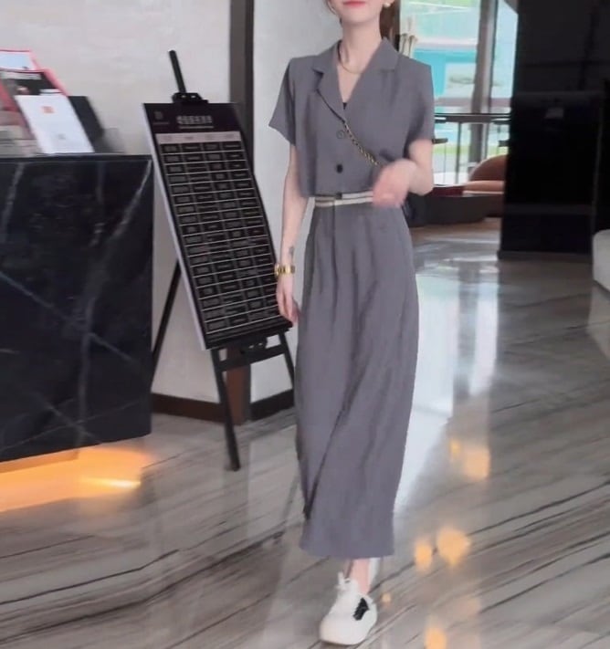洗練されたデザインが魅力のパンツとスカートの2タイプのセットアップ。ボトムスはロングパンツまたはスカートで、トップスはVネックと襟付きのジャケット。おしゃれで女性らしいシルエットが特徴で、ハイウエストでウエストラインを美しく引き立てます。スリットやポケットなどのアクセントがさりげない抜け感を演出します。