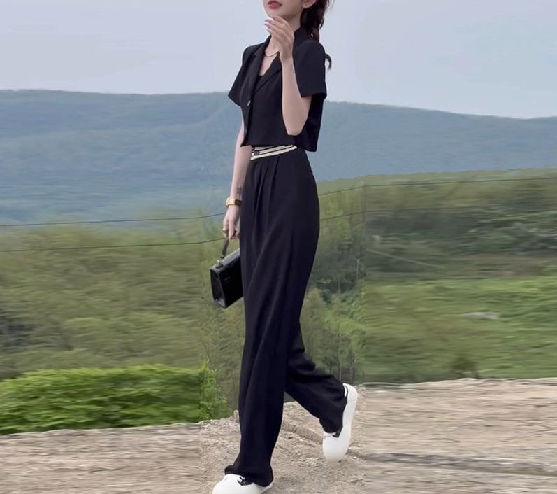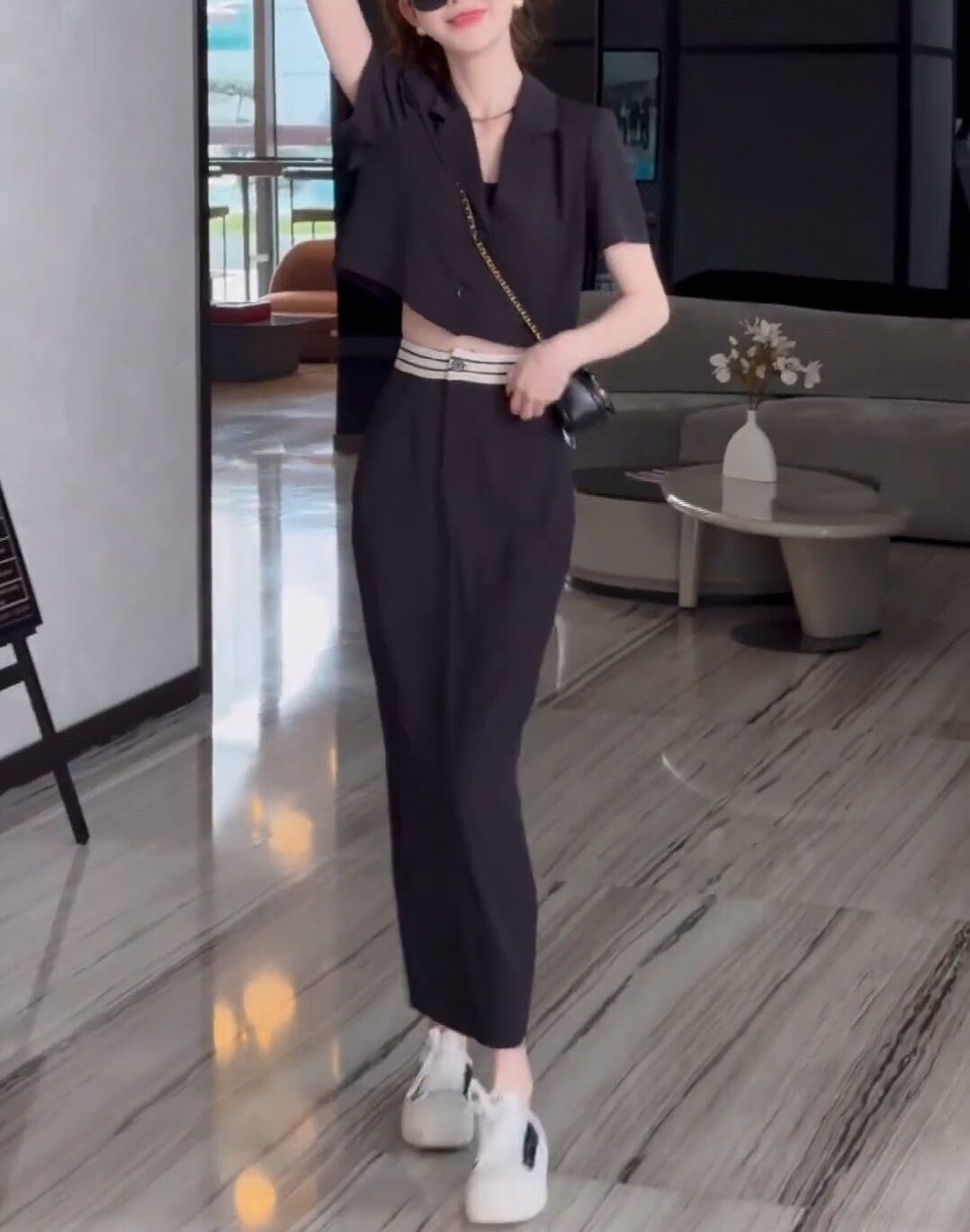 2タイプ セットアップ ジャケット パンツ スカート 2点セット 上下セット レディース トップス ボトムス ロングパンツ ロングスカート ロング マキシ 半袖 Vネック 襟付き タック スリット ポケット ハイウエスト 前開き かわいい 大人可愛い シンプル カジュアル おしゃれ 春 夏 秋 ママ 通勤 学生 学校 通学 デート お出かけ 旅行 公園 女子会 休日 ショッピング 重ね着 脚長 普段使い 着回し S M L XL 2XL 大きいサイズ 黒 ブラック グレー カーキ