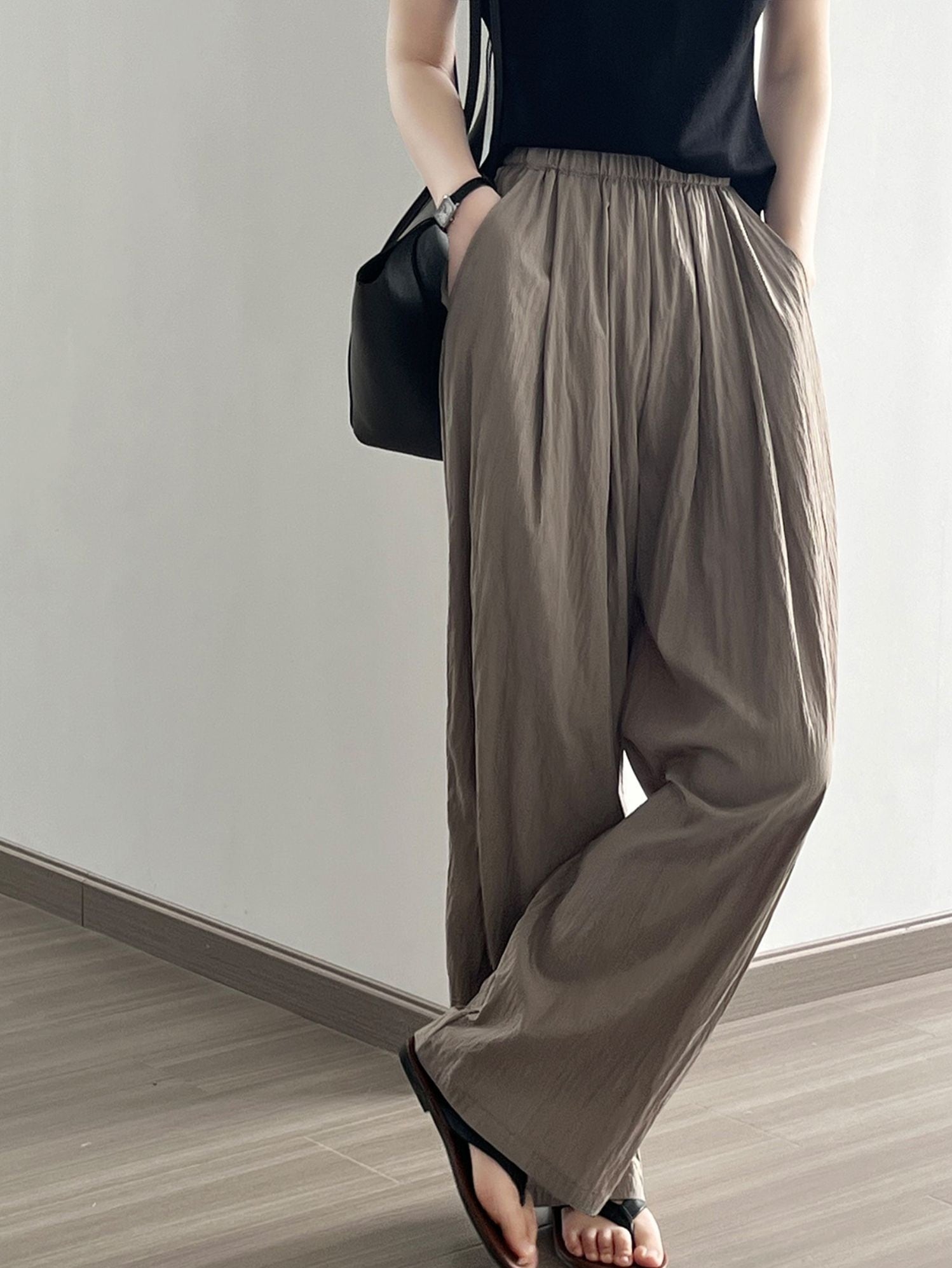 ウエストゴム プリーツ カジュアルパンツ レディース パンツ ボトムス ストレートパンツ ロングパンツ ワイドパンツ ロング ワイド ストレート プリーツ ハイウエスト ウエストゴム 伸縮性 シワ加工 薄手 かわいい 大人可愛い シンプル カジュアル おしゃれ こなれ感 ラフ ルーズ 抜け感 無地 春 夏 ママ 通勤 学生 学校 通学 デート お出かけ 旅行 女子会 休日 ショッピング カフェ 体型カバー 脚長 普段使い 着回し M L ゆったり 黒 ブラック グレー ベージュ コーヒーブラウン