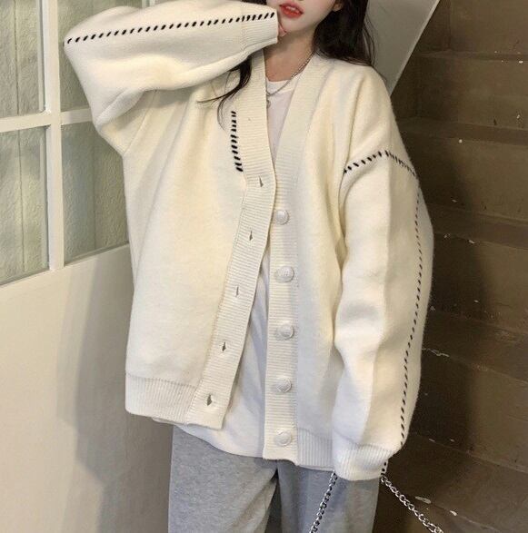 ステッチ Vネック カーディガン レディース トップス 羽織 丈長 ミディアム 長袖 襟なし ポケット 前開き ステッチ入り かわいい 大人可愛い きれいめ シンプル カジュアル おしゃれ こなれ感 ルーズ 無地 春 秋 冬 ママ 通勤 学生 学校 通学 デート お出かけ 旅行 公園 女子会 休日 ショッピング カフェ モノトーン 重ね着 暖かい 体型カバー 普段使い 着回し レイヤード S M L XL ゆったり 黒 ブラック オフホワイト