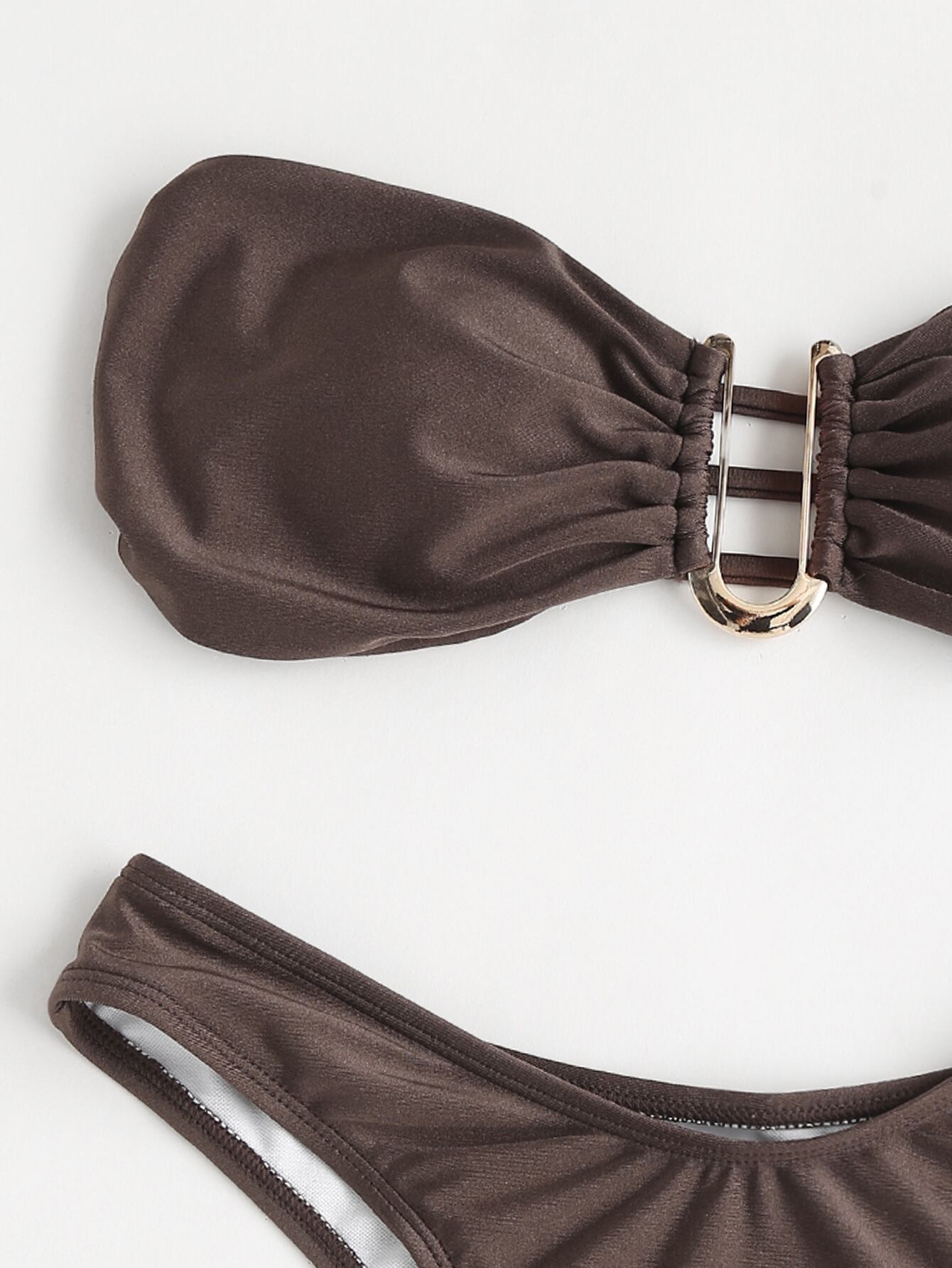 水着 ビキニ スイムウェア レディース バンドゥ ノンワイヤー パッド付き U字金具 マイクロ ブラジリアン ハイレグ セット ツーピース 上下セット かわいい 大人可愛い きれいめ シンプル カジュアル 大人っぽい おしゃれ お洒落 存在感 クール スタイリッシュ エキゾチック セクシー トレンド ベーシック フェミニン 無地 リゾート 旅行 温泉 プール 夏 海 美脚 脚長 モテ こなれ感 S M L ブラック グリーン 黒 茶色 ブラウン オレンジ