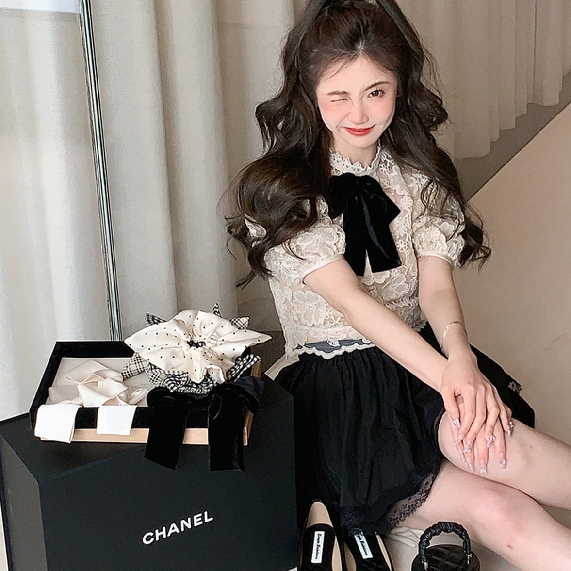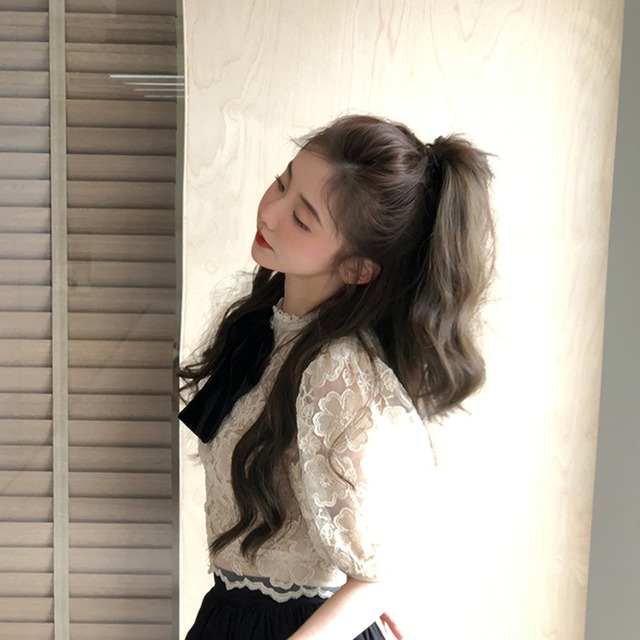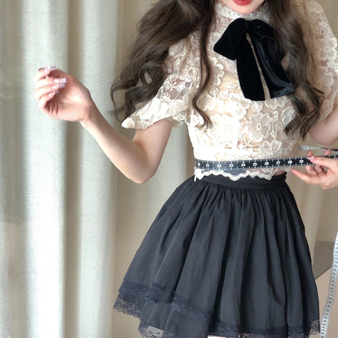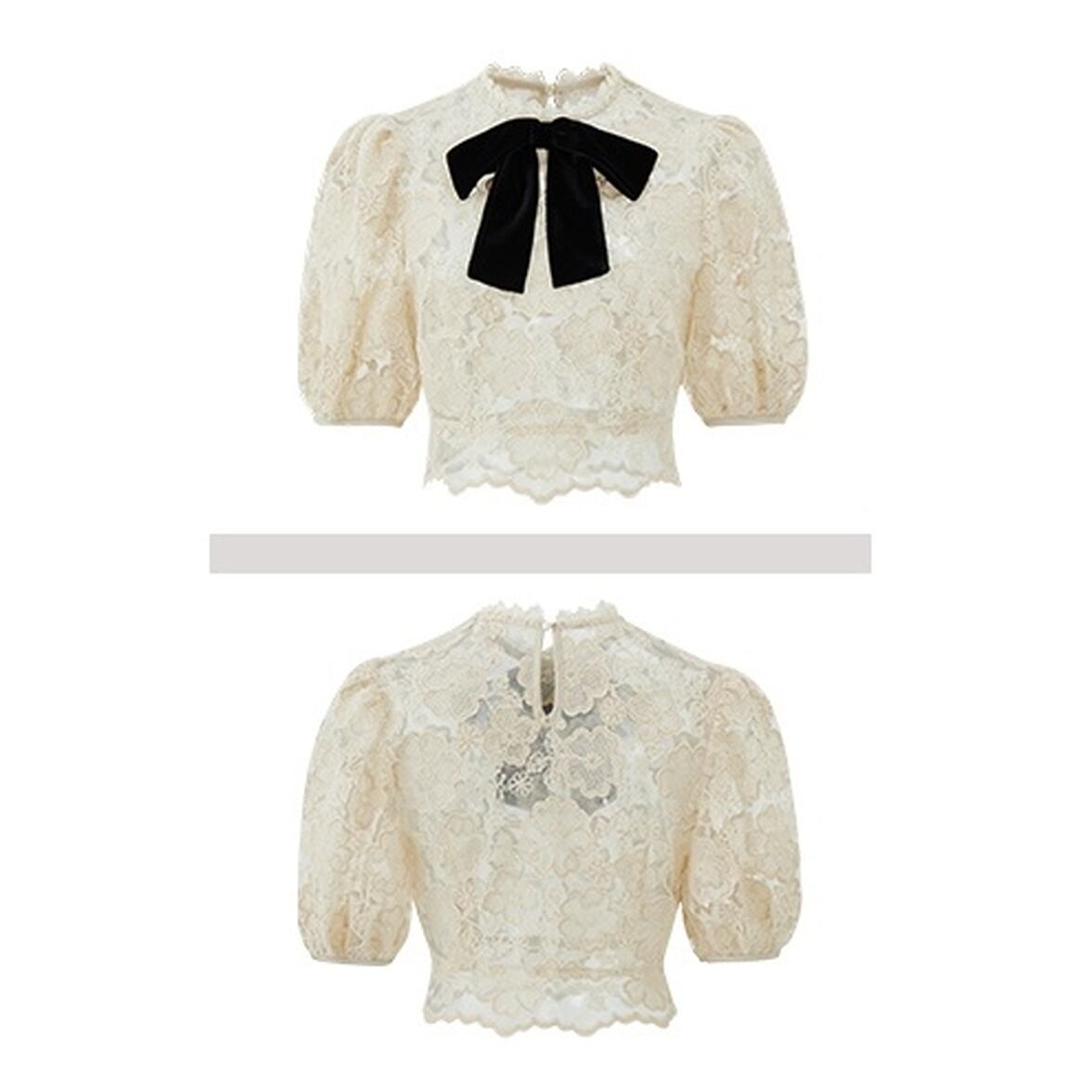 総レースブラウス ボリューム袖レースシャツ レディース トップス シャツ ブラウス カットソー クロップド丈 半袖 ボリューム袖 パフスリーブ ハイネック スタンドカラー りぼんタイ スリム フェミニン レース シフォン リボン ウエストマーク ハイウエスト 透け感 シースルー かわいい 大人可愛い きれいめ 上品 おしゃれ レトロ ガーリー エレガント ラブリー キュート クラシカル ロマンティック 花柄 春 夏 通勤 学校 デート お出かけ 休日 ショッピング 体型カバー イベント