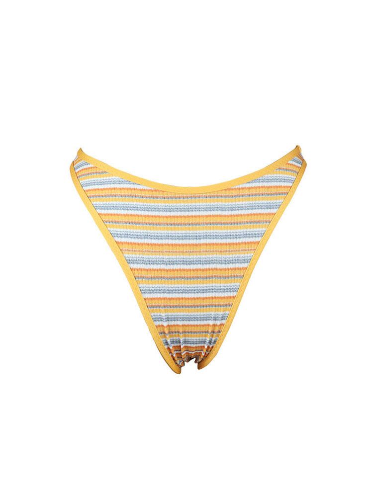 大人可愛い印象を与えるカラフルな三角ビキニ。