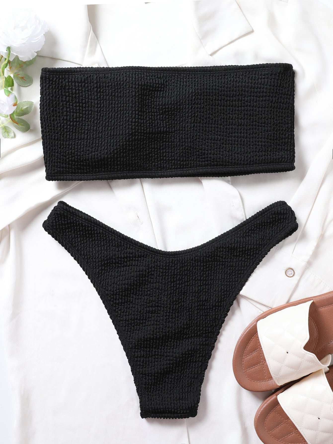 バンドゥデザインでデコルテを美しく見せるノンワイヤータイプのビキニ。