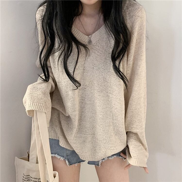Vネック ルーズ ニットセーター レディース トップス ニット セーター プルオーバー 丈長 ミディアム 長袖 ドロップショルダー 萌袖 襟なし 薄手 かわいい 大人可愛い きれいめ シンプル カジュアル おしゃれ こなれ感 ルーズ キュート 無地 春 秋 ママ 通勤 学生 学校 通学 デート お出かけ 旅行 公園 女子会 休日 ショッピング カフェ 重ね着 韓国 暖かい 体型カバー 普段使い 着回し S M L XL ゆったり アプリコット グレーブルー