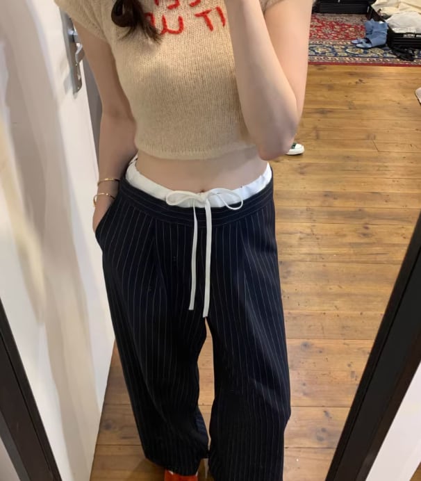 シックで上品なデザインが魅力のタックパンツ。ハイウエストで脚長効果もばっちりです。ストライプ柄がさりげないアクセントになり、大人可愛いコーディネートにもピッタリです。