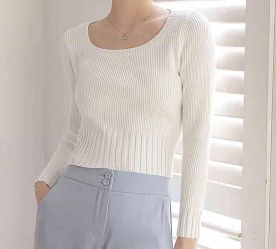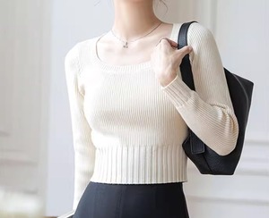 スクエアネックが美しいショート丈のニットセーター。