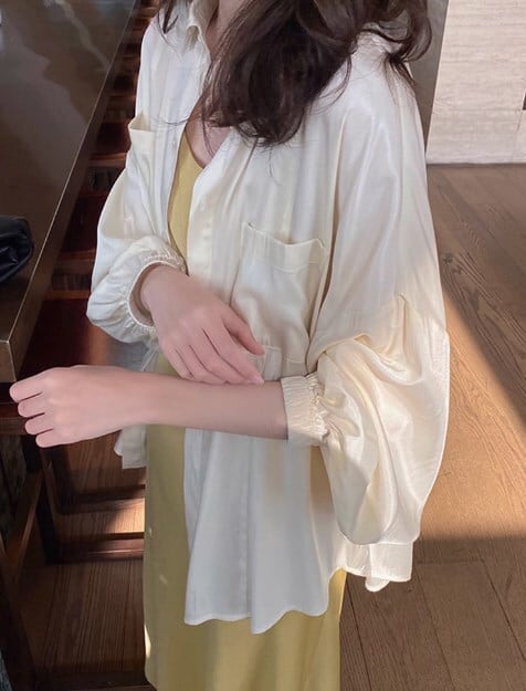 パフスリーブやドロップショルダーが女性らしい印象を演出し、羽織るだけでこなれ感が演出できる一枚です。