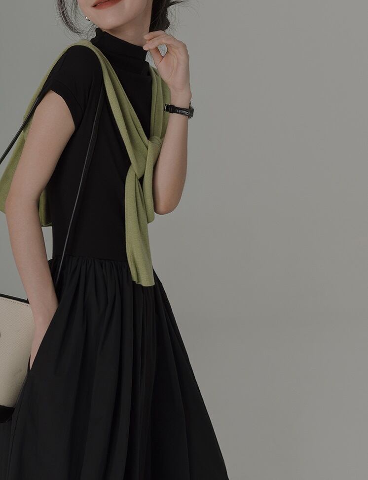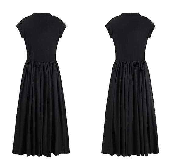 半ハイネック 半袖 ロングワンピース レディース ワンピース サマーワンピ 膝下 ロング マキシ 半袖 襟付き ハーフハイネック Aライン 切り替え ドレープ フェミニン ハイウエスト 切り替えデザイン かわいい 大人可愛い きれいめ シンプル カジュアル おしゃれ こなれ感 無地 春 夏 秋 ママ 通勤 学生 学校 通学 デート お出かけ 旅行 公園 女子会 休日 ショッピング カフェ モノトーン 重ね着 普段使い 着回し レイヤード S M L 黒 ブラック
