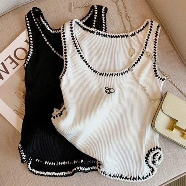レディース トップス ニット インナー ショート ノースリーブ タンクトップ スリム 細身 フェミニン ストリート へそ出し 刺繍 リブ リブニット アメカジ バイカラー かわいい 大人可愛い きれいめ シンプル カジュアル 上品 おしゃれ こなれ感 ラフ 抜け感 ベーシック アメリカン 無地 春 夏 デート お出かけ お泊まり アウトドア キャンプ 旅行 海 ビーチ 女子会 休日 ショッピング ライブ フェス 重ね着 コーデ 普段使い 着回し レイヤード 定番 S M L 白 ホワイト 黒 ブラック