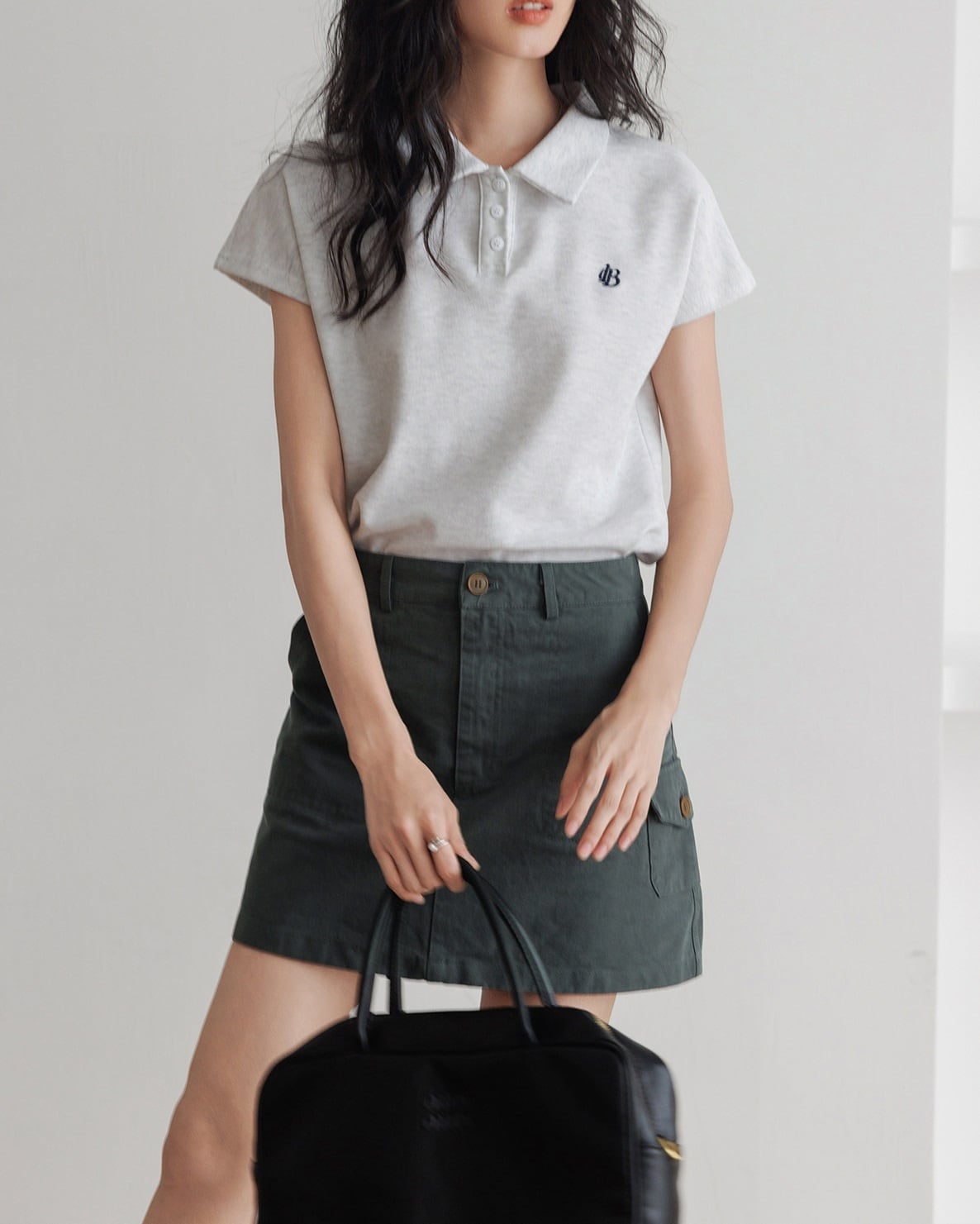 ロゴ入り 襟付き 半袖 ポロシャツ レディース トップス プルオーバー ミディアム 半袖 角襟 ポロカラー ボタン かわいい 大人可愛い シンプル カジュアル おしゃれ こなれ感 マニッシュ ロゴ 春 夏 秋 ママ 通勤 学生 学校 通学 デート お出かけ 旅行 公園 女子会 休日 ショッピング カフェ 重ね着 韓国 オルチャン 体型カバー 普段使い 着回し レイヤード S M L ゆったり ホワイトグレー