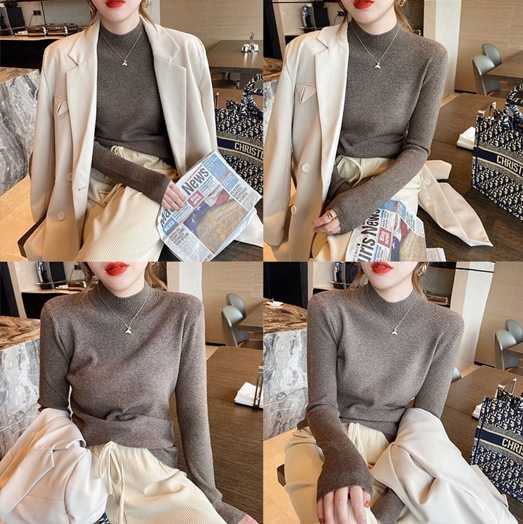 ハーフハイネック 長袖 ニットセーター レディース トップス ニット セーター プルオーバー インナー 襟付き 半ハイネック スリム 細身 リブ 伸縮性 薄手 かわいい 大人可愛い きれいめ シンプル カジュアル 上品 おしゃれ こなれ感 無地 春 秋 冬 ママ 通勤 学生 学校 通学 デート お出かけ 旅行 公園 女子会 休日 ショッピング カフェ 重ね着 韓国 オルチャン 暖かい 普段使い 着回し レイヤード S M L 白 ホワイト 黒 ブラック ベージュ カーキ ピンク 水色 キャメル