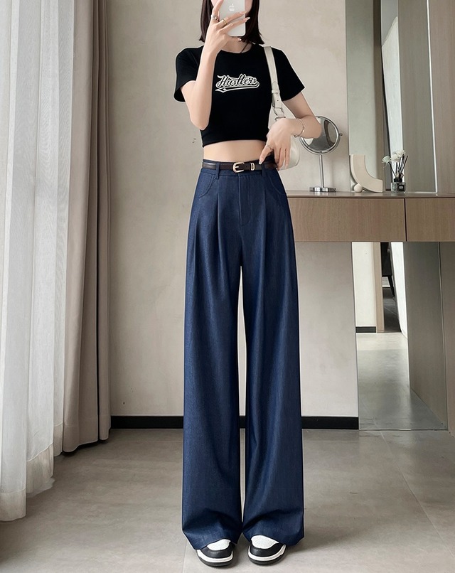 美脚効果抜群なハイウエストストレートデニムパンツです。