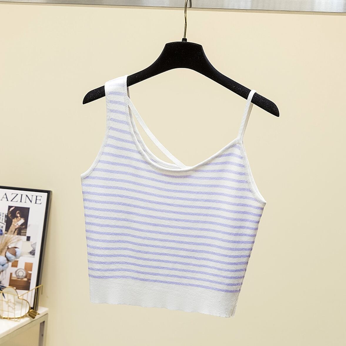 クロップドタンクトップ アシンメトリー ボーダー レディース トップス インナー キャミソール タンクトップ ミニ ショート クロップド丈 袖なし ノースリーブ ラウンドネック タイト スリム 細身 アシンメトリー かわいい 大人可愛い きれいめ カジュアル おしゃれ かっこいい こなれ感 ラフ マニッシュ ガーリー キュート アクティブ デート お出かけ アウトドア キャンプ パーティー イベント リゾート 旅行 海 プール 休日 バカンス ショッピング フェミニン