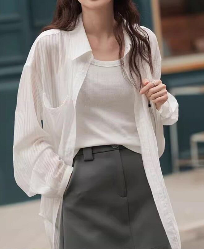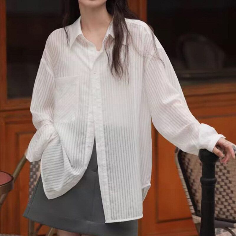 レディース トップス シャツ カーディガン オーバーサイズ 羽織 前開き ロング 長袖 襟付き 角襟 フェミニン 透け感 シアー かわいい 大人可愛い きれいめ シンプル カジュアル 上品 おしゃれ こなれ感 ラフ 抜け感 ベーシック ナチュラル ストライプ 春 夏 秋 ロングシーズン 学生 学校 通学 デート お出かけ お泊まり アウトドア キャンプ リゾート 旅行 海 ビーチ 公園 女子会 休日 バカンス 重ね着 コーデ 普段使い 着回し レイヤード 定番 紫外線対策 S M ゆったり ゆる ホワイト