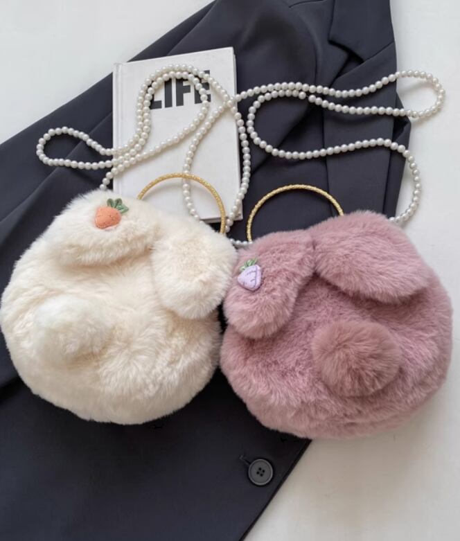 まるで本物のような、ふわふわのウサギショルダーバッグ。