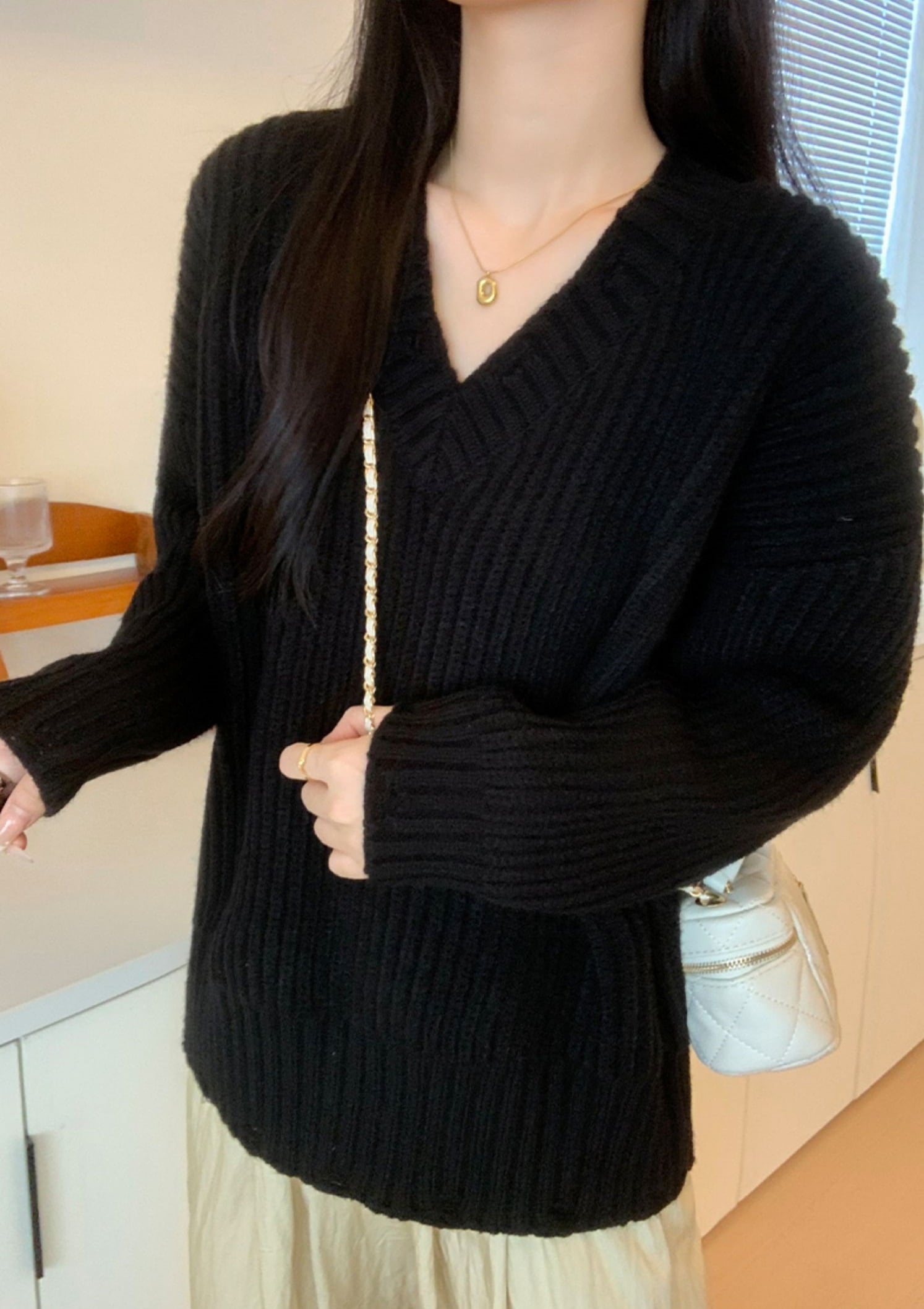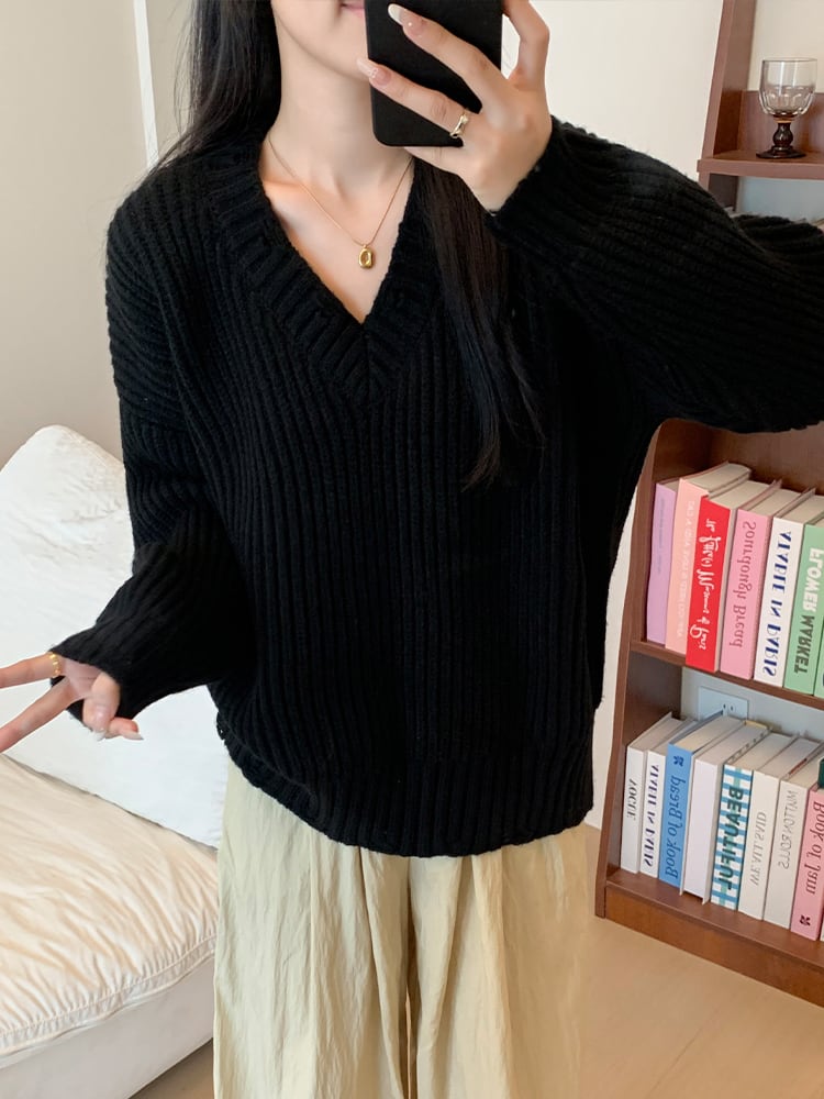 リブ編み Vネック ニットセーター レディース トップス ニット セーター プルオーバー 丈長 ミディアム 長袖 ドロップショルダー 襟なし リブ リブニット かわいい 大人可愛い きれいめ シンプル カジュアル おしゃれ こなれ感 ルーズ 無地 春 秋 冬 ママ 通勤 学生 学校 通学 デート お出かけ 旅行 公園 女子会 休日 ショッピング カフェ 重ね着 韓国 暖かい 体型カバー 普段使い 着回し レイヤード ゆったり ゆる フリーサイズ 黒 ブラック