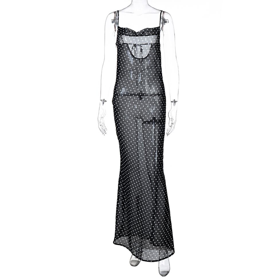 ドット柄シアーロングドレス ドット柄シースルーワンピース レディース ビーチドレス リゾートドレス シースルーロングワンピース ドットワンピース ワンピース ドレス ドレスワンピース ワンピドレス ロング 袖なし ノースリーブ Vネック スリム 細身 シースルー 透け感 シアー かわいい 大人可愛い きれいめ おしゃれ エキゾチック こなれ感 ガーリー エレガント キュート ドット柄 水玉 夏 パーティー イベント リゾート 旅行 海 プール ビーチ 休日 バカンス インスタ映え ブラック