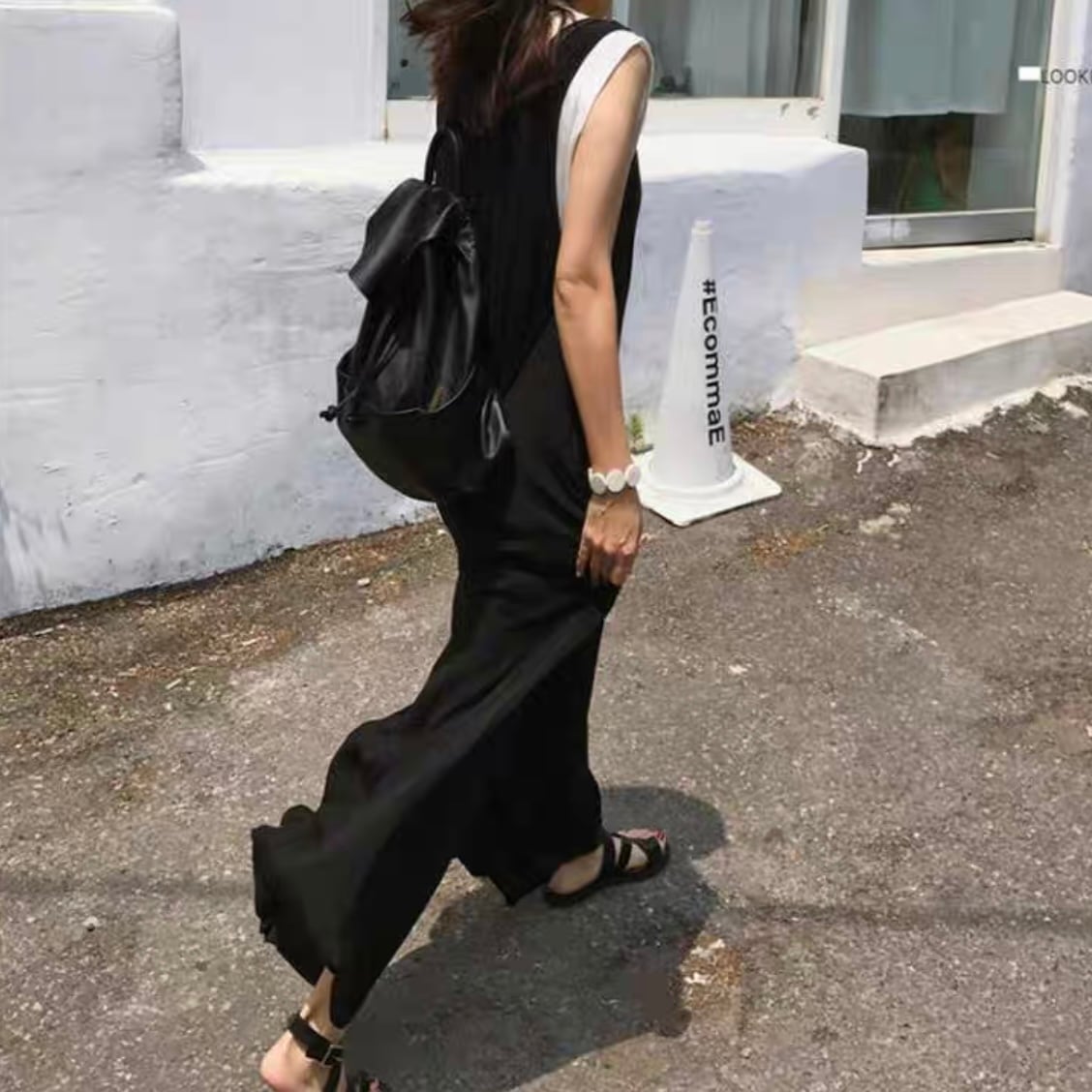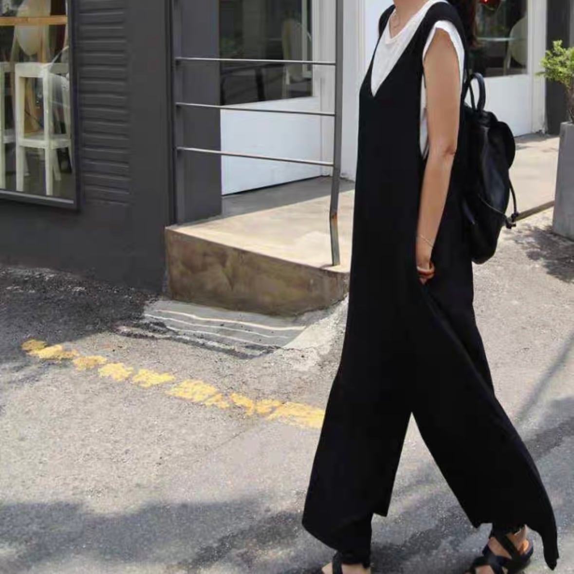 サロペット ボトムス パンツ オールインワン ストレートパンツ ガウチョパンツ ロング ロング丈 アンクル丈 袖なし ノースリーブ Vネック 重ね着 ストレート ワイド ガウチョ Iライン かわいい 大人可愛い きれいめ シンプル カジュアル 大人 大人カジュアル 上品 おしゃれ お洒落 大人女子 こなれ感 モダン 無地 柄 春 夏 秋 冬 オールシーズン シーズンレス S M L XL サイズ展開 デート お出かけ 公園デビュー 女子会 休日 着回し 普段使い 韓国 ブラックコーデ 大人コーデ ブラック