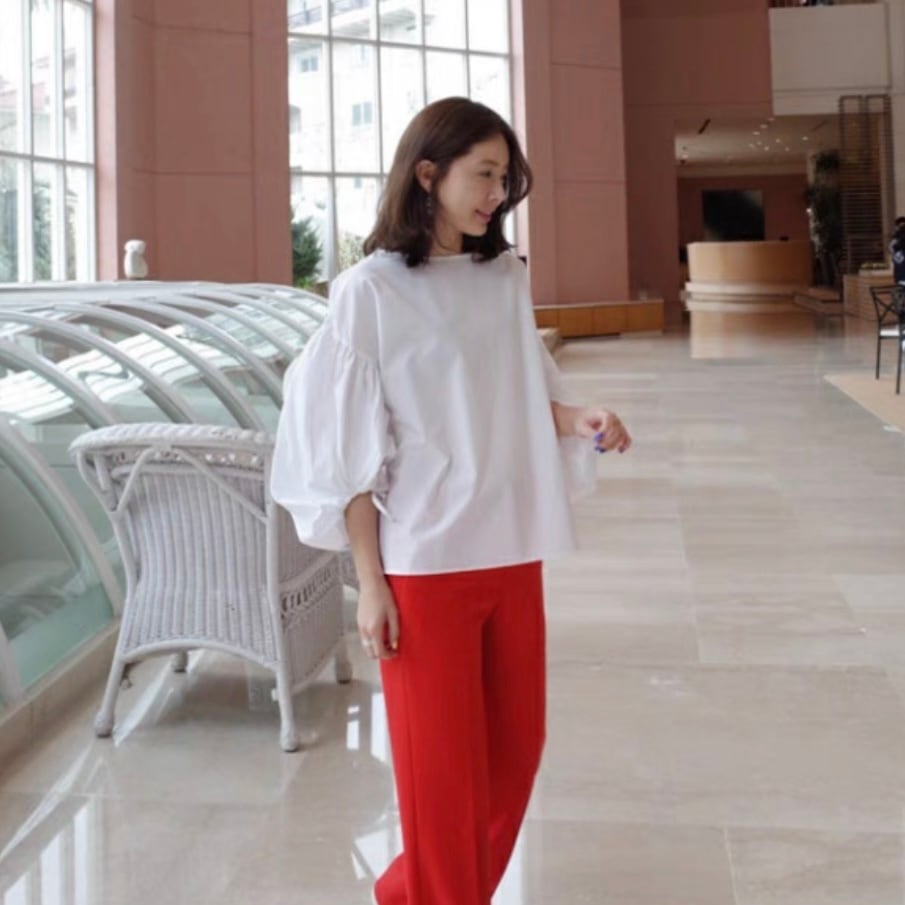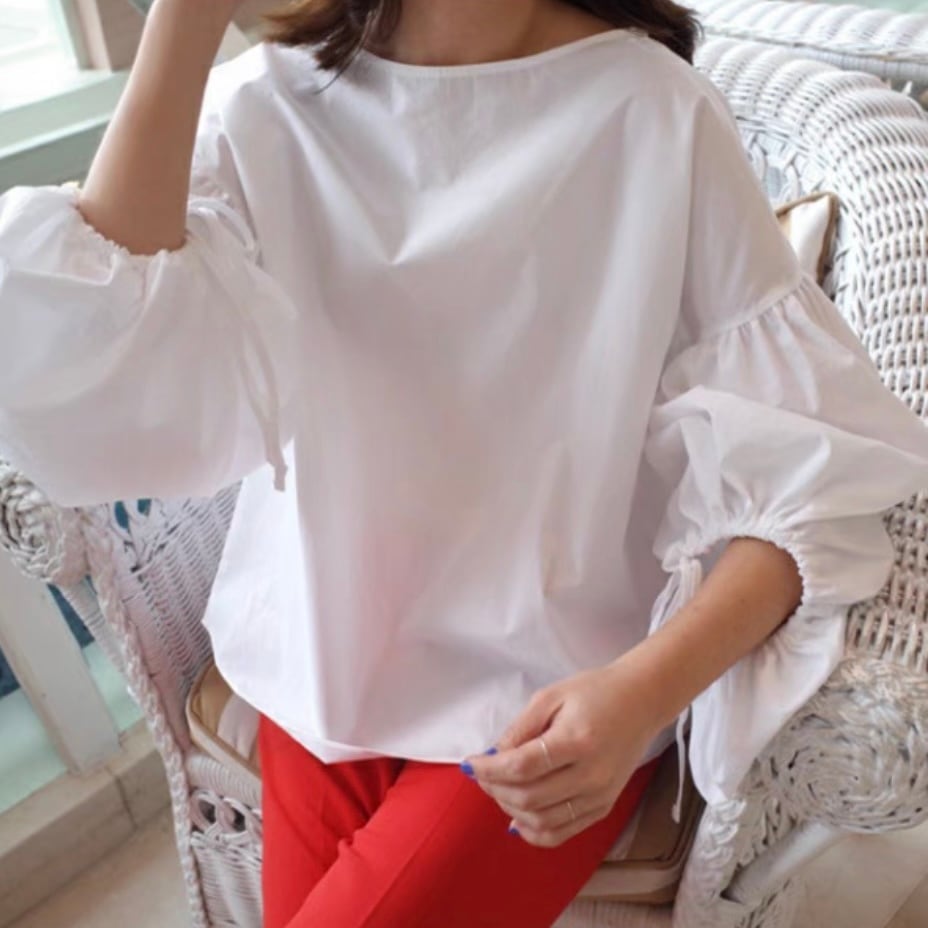 トップス 韓国風 オルチャン ショート丈 バルーン袖 シャツ ブラウス 白 コットン 綿 袖あり 長袖 立体感 ボリューム袖 袖リボン ボートネック デコルテ バルーンスリーブ ストレート Iライン 大人可愛い きれいめ シンプル カジュアル 大人 上品 おしゃれ お洒落 かっこいい 大人女子 こなれ感 クール モード系 セクシー モダン スタイリッシュ シック 無地 春 秋 冬 韓国系 モテ 定番 S M L XL サイズ展開 大きいサイズ 大きい 大人カラー ホワイト ホワイトコーデ 大人コーデ