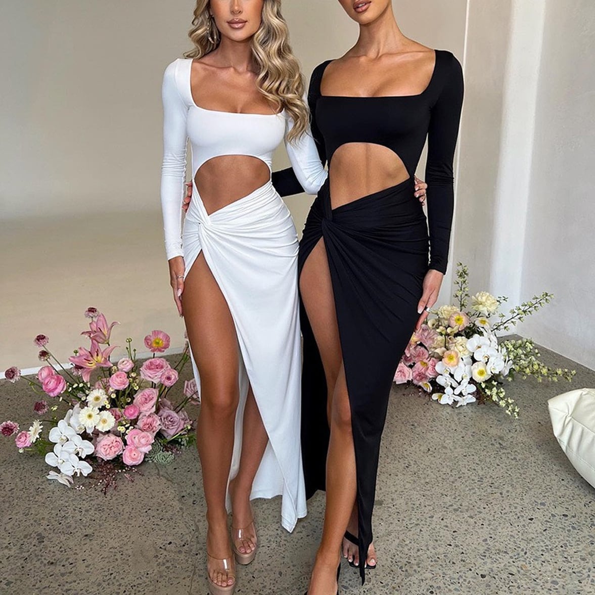 ロングタイトドレス カッティングタイトドレス レディース セクシードレス タイトドレス 肌見せ 美スタイル セクシーワンピース リゾートドレス セクシー リゾートワンピース バカンスドレス ロング 長袖 スクエアネック タイト スリム 細身 サイドスリット スリット 大人可愛い おしゃれ かっこいい エスニック エキゾチック こなれ感 ガーリー クール エレガント ラグジュアリー ワイルド フェミニン パーティー イベント リゾート インスタ映え