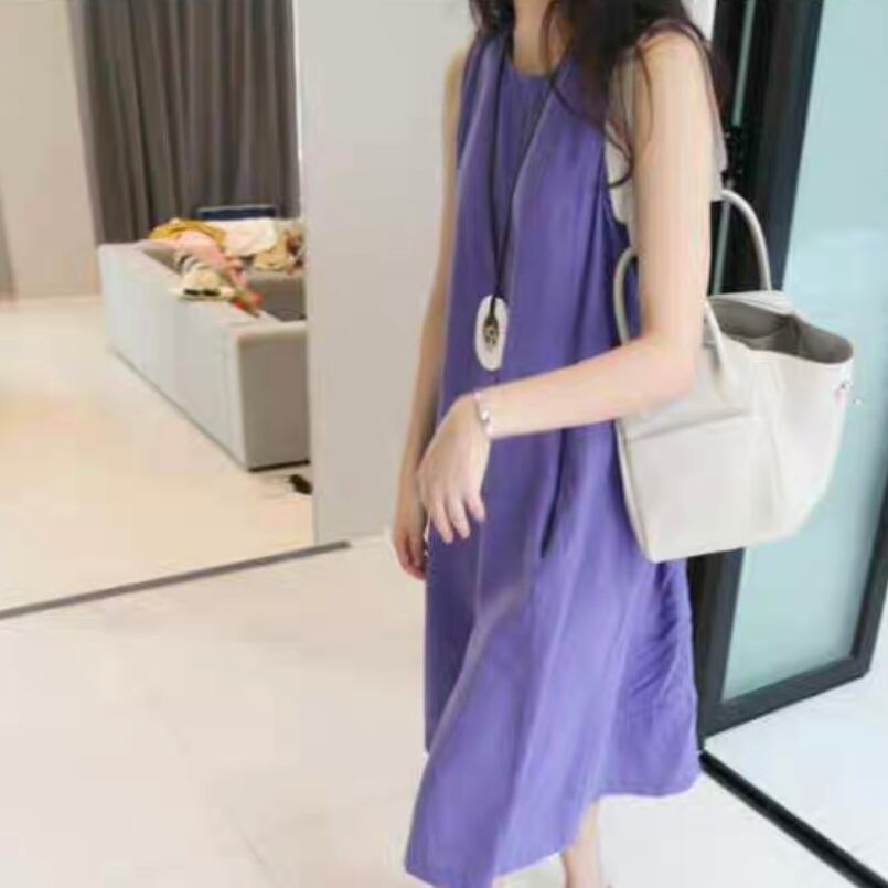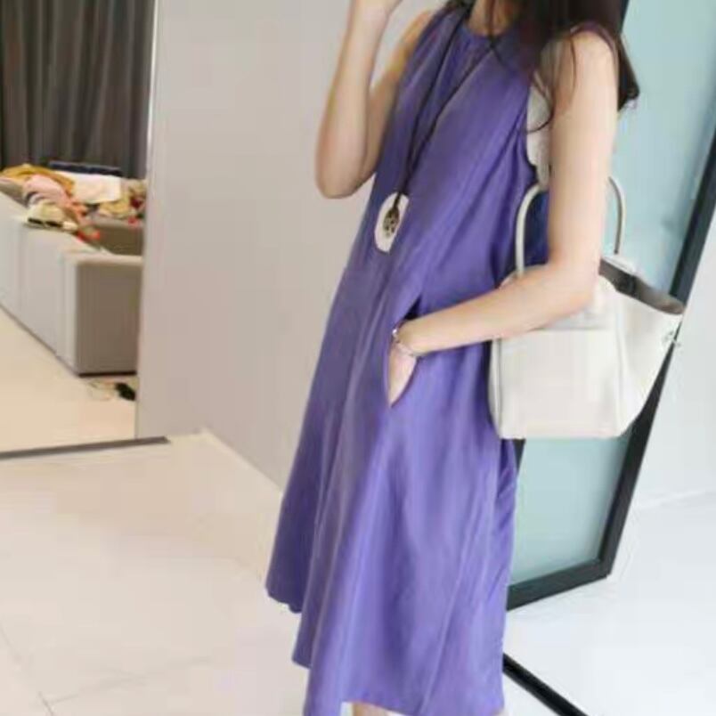 ストレートデザインで大人可愛い印象を与えつつ、膝丈とノースリーブのスタイルがリラックスした雰囲気を演出します。